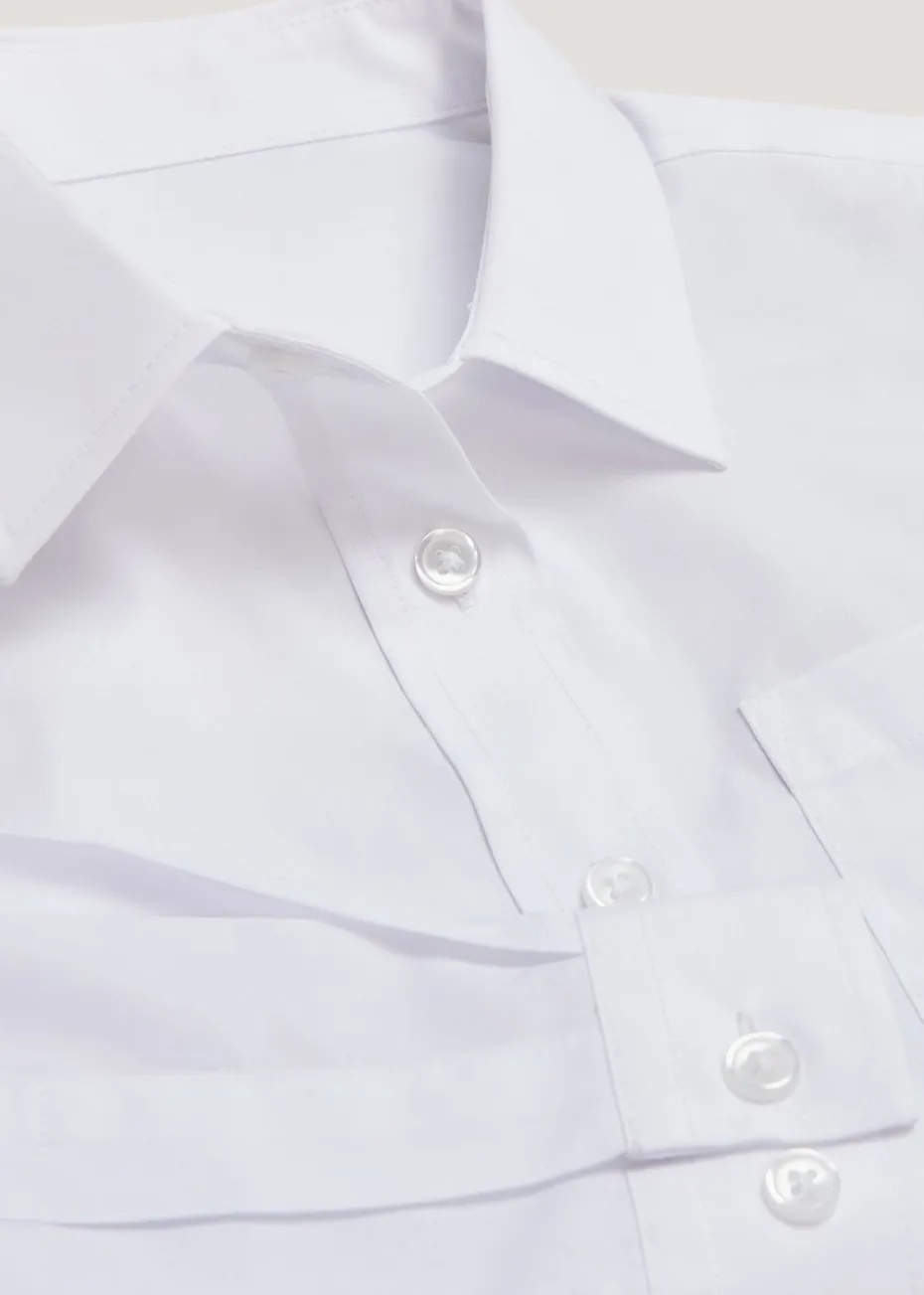 Comfortable, durable and most importantly, easy-iron, this two pack of long sleeve blouses will complete your girl’s back-to-school wardrobe. In white, the generous fit shirts have a classic collar and a rip tape front fastening on sizes 6-8 years, whilst the bigger sizes fasten with buttons. Make getting ready for school easier with out white generous fit long sleeve school blouses.