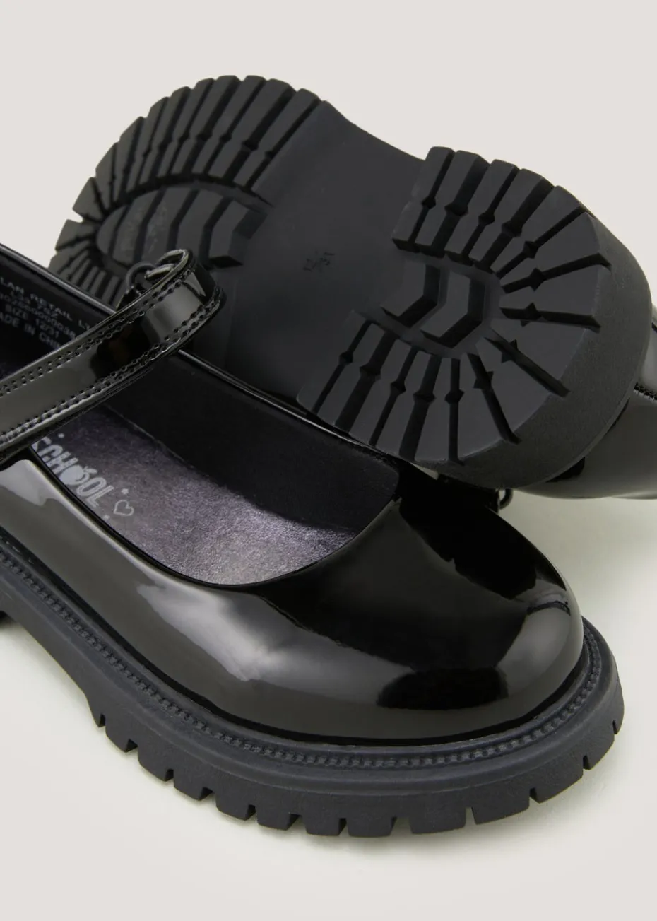 Girls Black Patent Chunky School Shoes (Younger 10-Older 5)