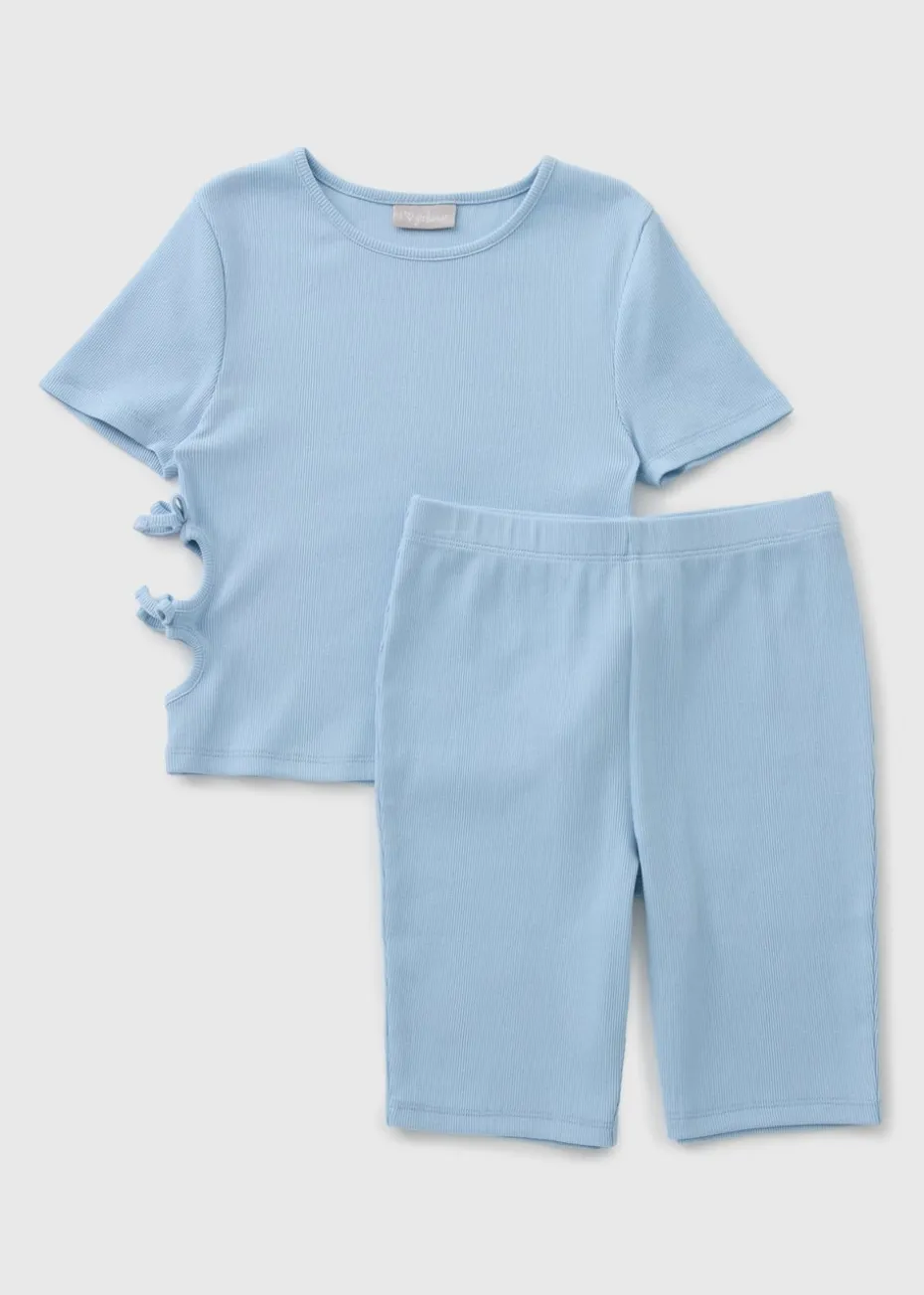 This cut out cycle set is perfect for your girls active lifestyle. The set includes a t-shirt and cycling shorts, both made from a soft and durable cotton blend.