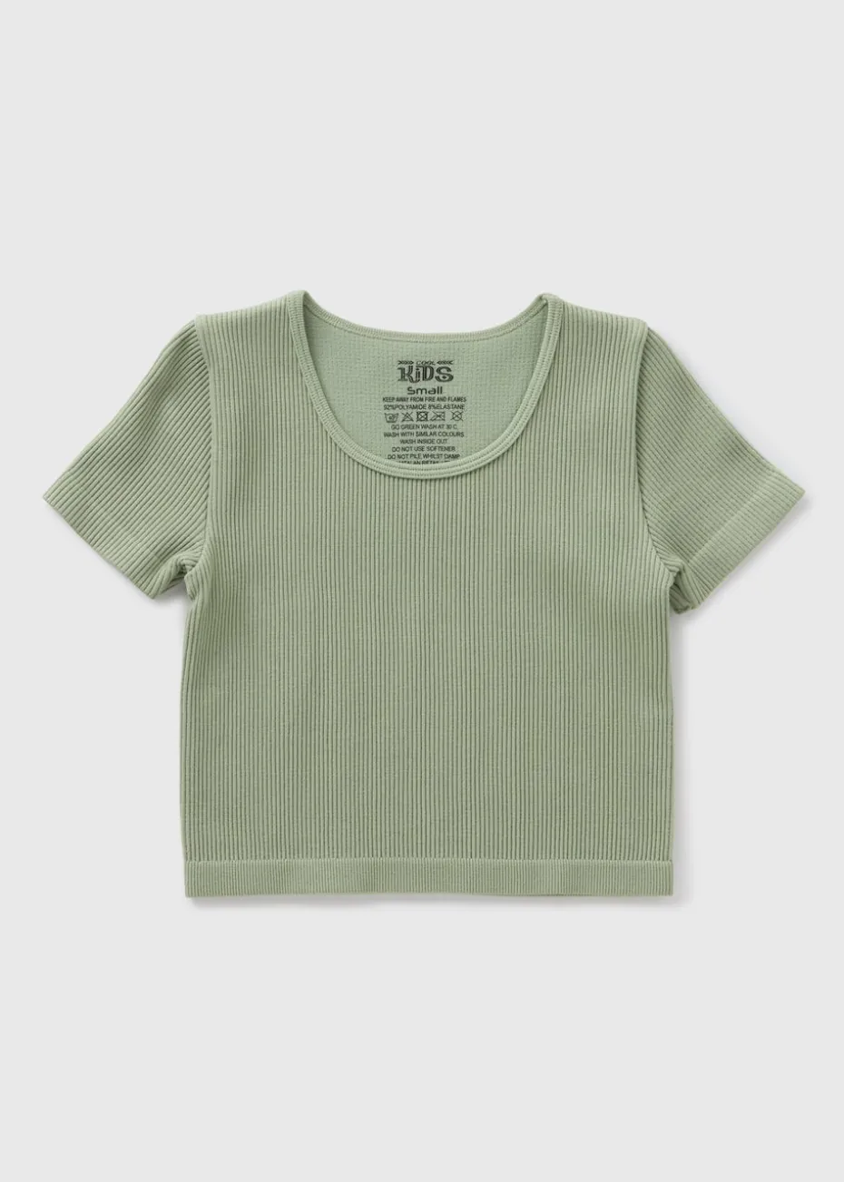 Discover seamless style with our Girls Green Seamless Top, crafted from soft cotton-blend fabric for supreme comfort. Designed in a vibrant sage hue, this top features a seamless ribbed fabric, adding a touch of elegance. The seamless construction ensures a smooth, non-restrictive fit, allowing your little one to move freely and comfortably.