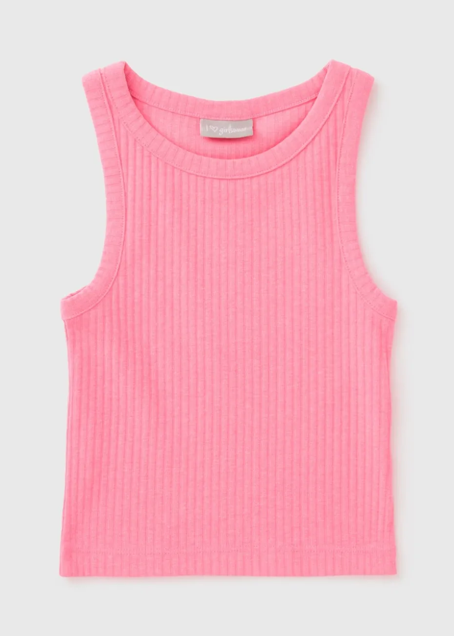 Add a pop of colour to her everyday wardrobe with this Girls Neon Pink Ribbed Vest, a comfy and versatile staple for any season. Whether layered or worn solo, this vest is perfect for playtime, outings, or lounging at home. Wear with denim shorts and a sunhat.