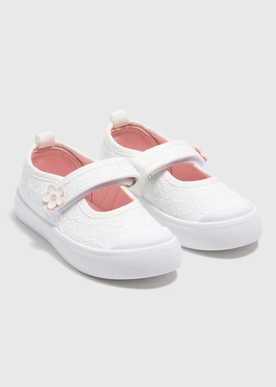 Let your little one skip into spring with our Girls White Broderie Pumps. These delightful shoes are a timeless classic, featuring intricate broderie anglaise detailing and a sweet scalloped trim. Crafted from premium leather, they’ll keep their feet comfortable all day long.
