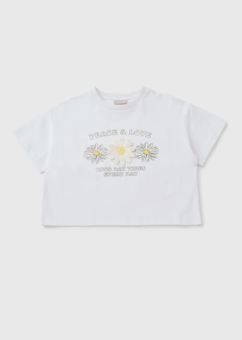 This summer, keep your little one looking cool and stylish in our Crochet Upspe Tee in white. Made from soft and comfortable cotton, this tee features a unique crochet look design that adds a touch of texture to her look. The relaxed fit and short sleeves ensure she stays comfortable all day long, whether she’s playing in the park or attending a special event.