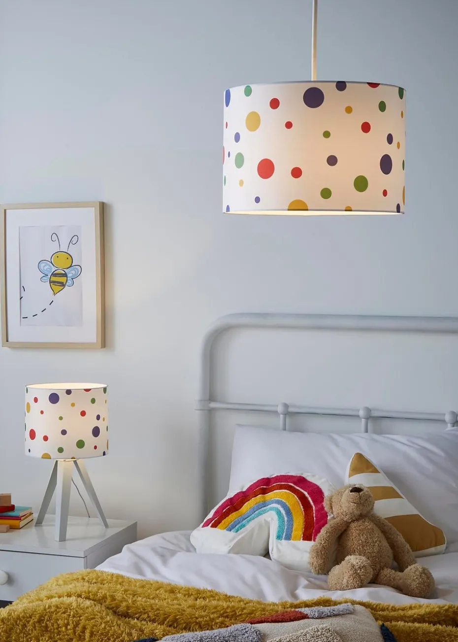 The GLOW Coloured Dots Table Lamp with a White Base is a cheerful and stylish lighting accessory designed to brighten up any room with its vibrant and playful design. Featuring a sleek white base and a shade adorned with colourful dots, this table lamp adds a touch of fun and charm to children’s rooms, playrooms, or any space in need of a lively accent. Height 39cm x Width 22cm. Integrated LED, no bulb required.