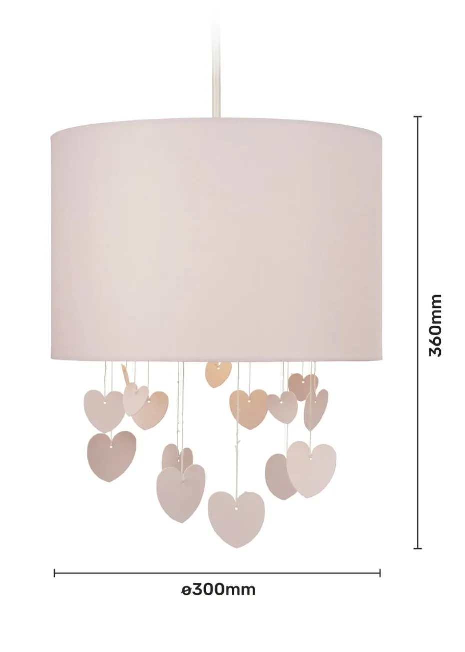 The Glow Hearts Pink Shade with Pink Heart-Shaped Mobiles brings a touch of whimsy and romance to any room with its enchanting design. Featuring a soft pink lamp shade adorned with delicate heart-shaped mobiles, this charming piece creates a sweet and playful atmosphere ideal for children’s bedrooms, nurseries, or cozy corners. The heart-shaped mobiles gently sway, adding a dynamic and visually appealing element, while the soft illumination provides a warm, comforting glow. Combining delightful design with practical lighting, the Glow Hearts Pink Shade adds both elegance and a touch of fun to your home décor. Height 36cm x Width 30cm.