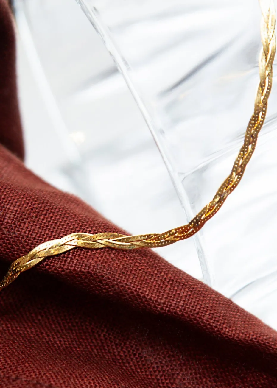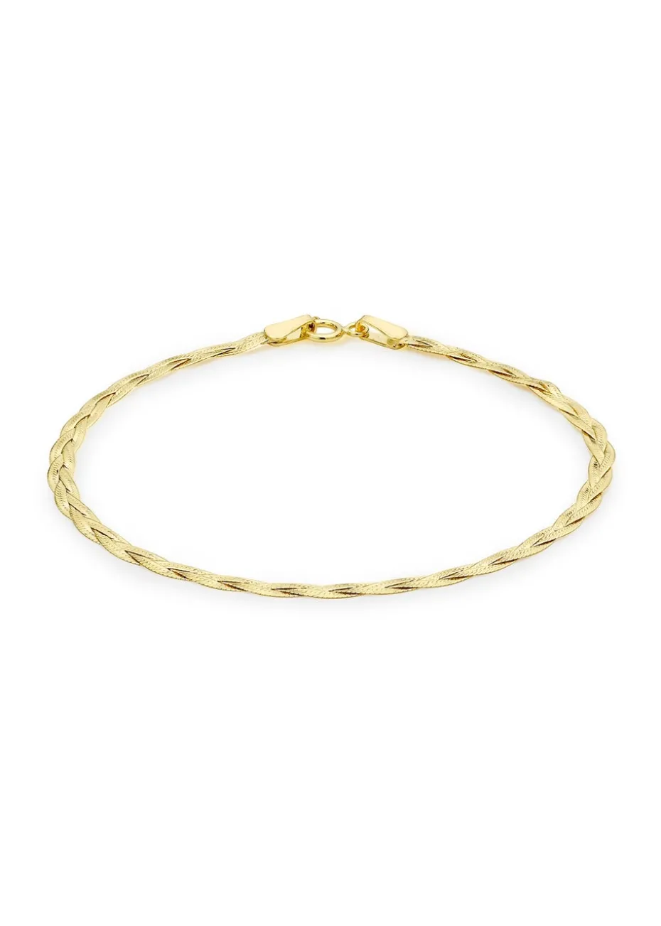 The 9ct Yellow Gold 3Plait Fine Herringbone Bracelet is an elegant and timeless piece of Jewellery that adds a touch of sophistication to any outfit.