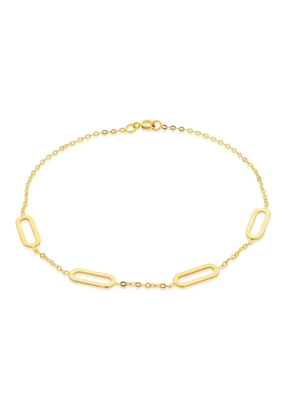 The Golden Moments 9ct Yellow Gold Paperclip Station Bracelet is a chic and versatile piece of jewellery that effortlessly blends timeless design with modern style.