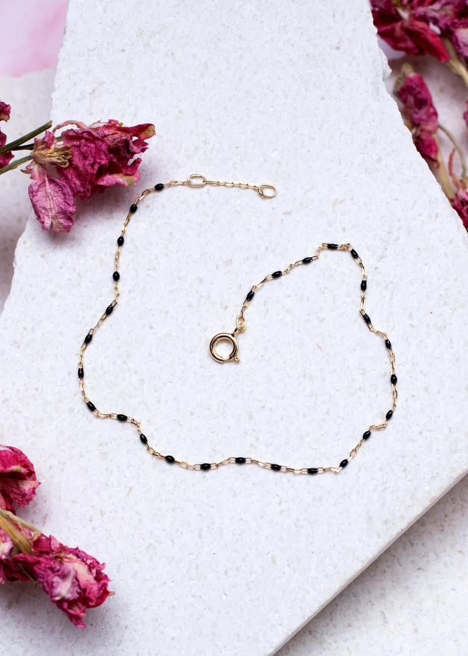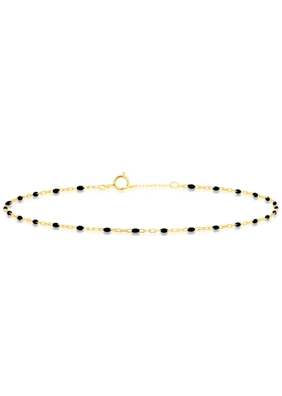 Crafted from highquality 9carat yellow gold, this bracelet features a unique design inspired by the classic paperclip shape. The delicate black enamel accents add a sophisticated contrast, enhancing its overall appeal.