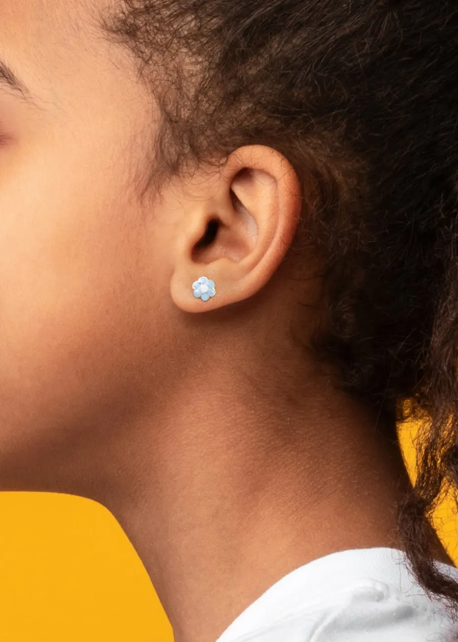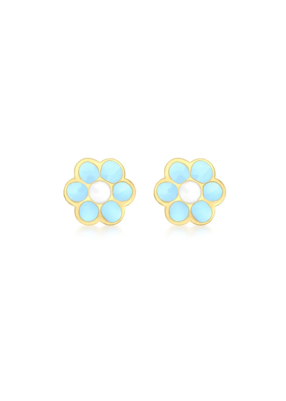 The Golden Moments 9ct Yellow Gold Blue Enamel ‘Flower’ Stud Earrings are a charming accessory that beautifully blends vibrant color with delicate design. Featuring a dainty flower motif, the blue enamel detailing adds a bright and cheerful touch to these elegant studs.