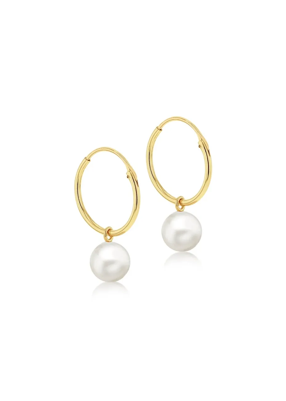 These exquisite earrings feature lustrous fresh water pearls gracefully suspended from sleek 9ct yellow gold hoops.