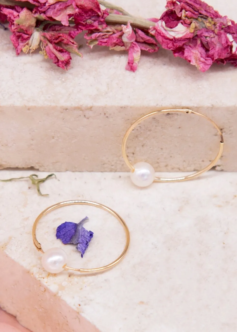 The classic gold design makes them a versatile accessory for any wardrobe. Each earring features a stunning 5mm fresh water pearl, known for its natural luster and soft glow. The pearls add a touch of refinement, making these earrings a perfect blend of simplicity and sophistication.