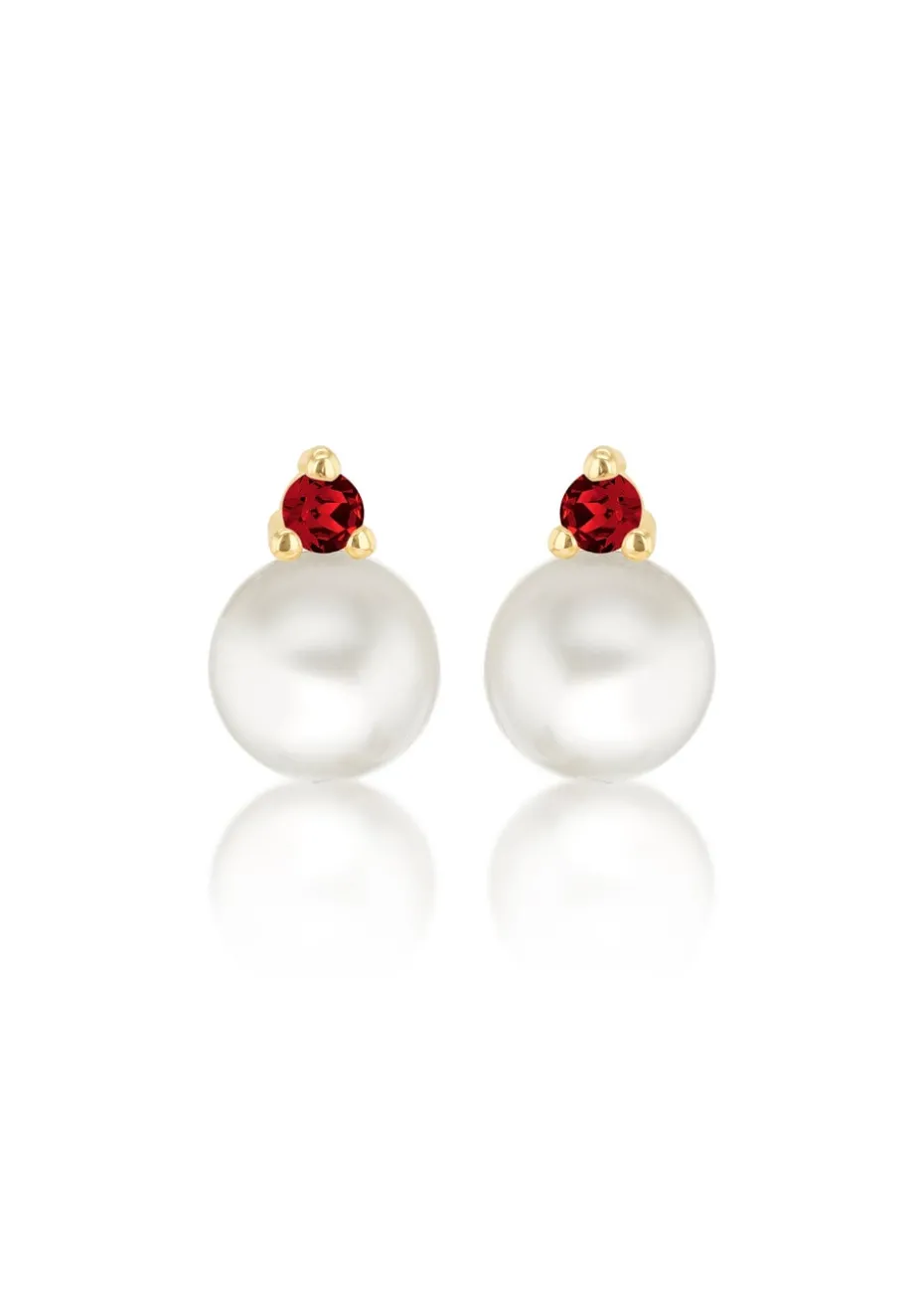 The deep red CZ stones add a pop of rich colour, beautifully contrasting with the soft sheen of the pearls. This unique pairing makes them perfect for both special occasions and everyday wear, adding a touch of sophistication and warmth to any outfit.
