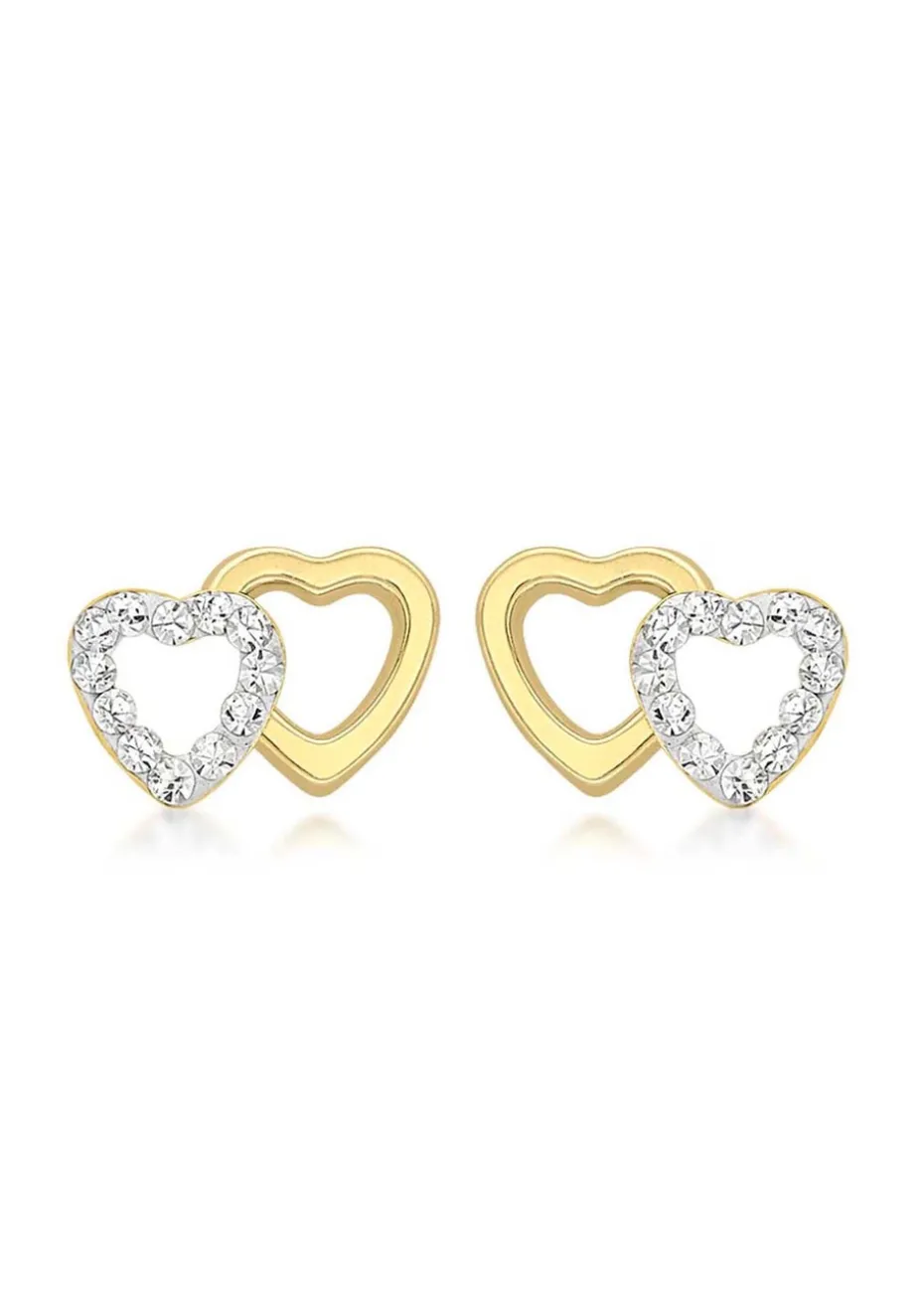 Crafted from 9ct yellow gold, these earrings feature a beautiful double open-heart design, with one heart adorned in a dazzling pave of cubic zirconia stones for added sparkle.