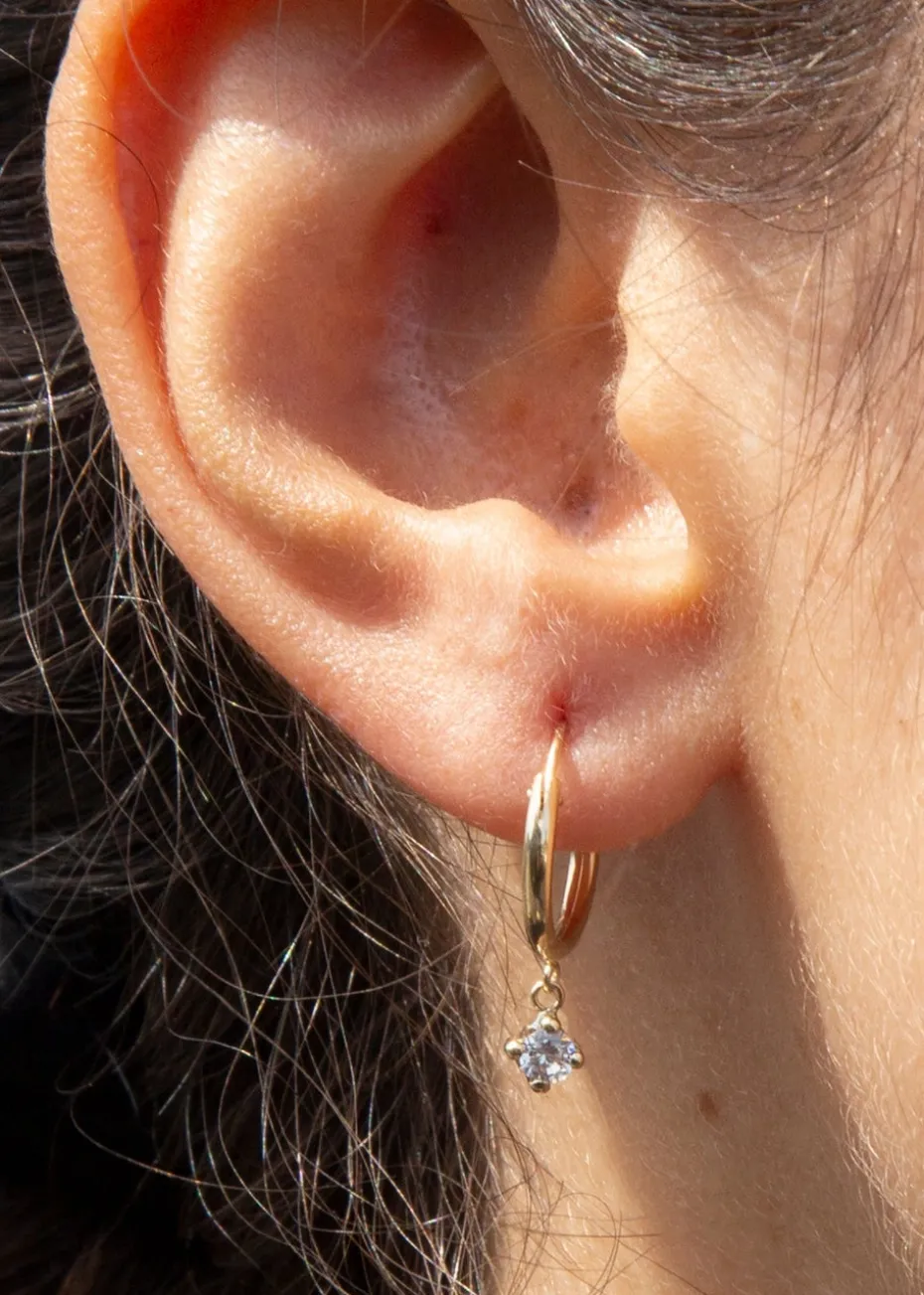 These hoop drop earrings combine the classic allure of hoops with the added sparkle of the CZ stones, making them a versatile choice for both everyday wear and special occasions.