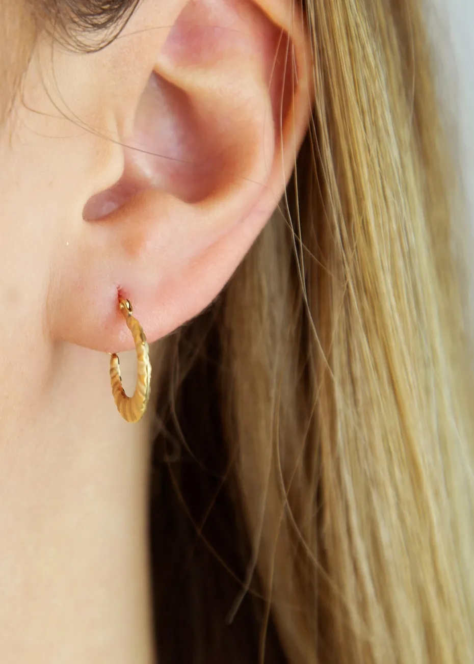 The 9ct Gold Satin and Polished Mini Hoops are a sophisticated blend of matte and shine.