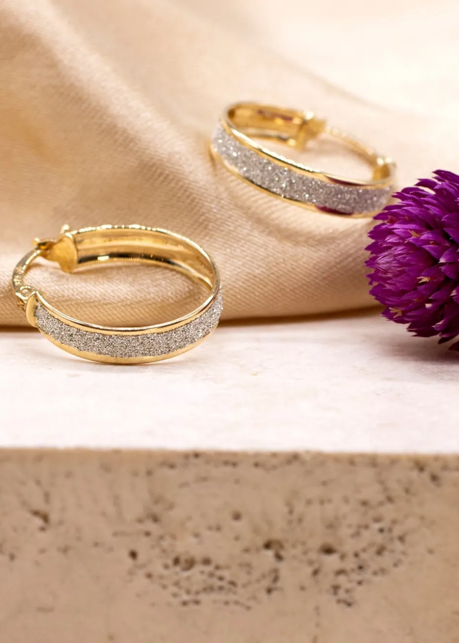 The stardust finish on these earrings adds a unique texture, catching the light with every movement.