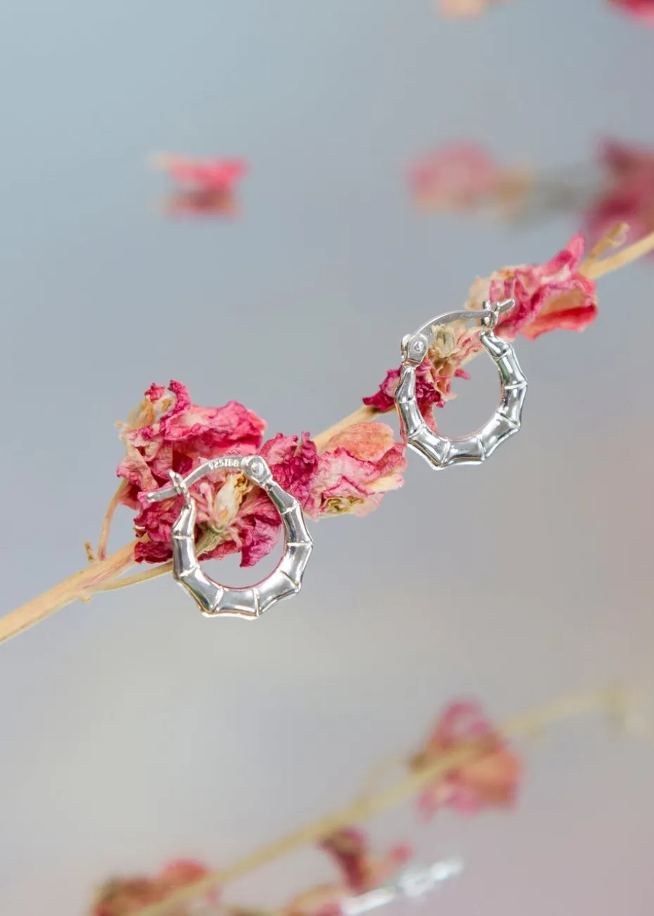 Crafted from Sterling Silver these Bamboo Hoops are perfect for everyday wear, they look great alone or when used to stack.