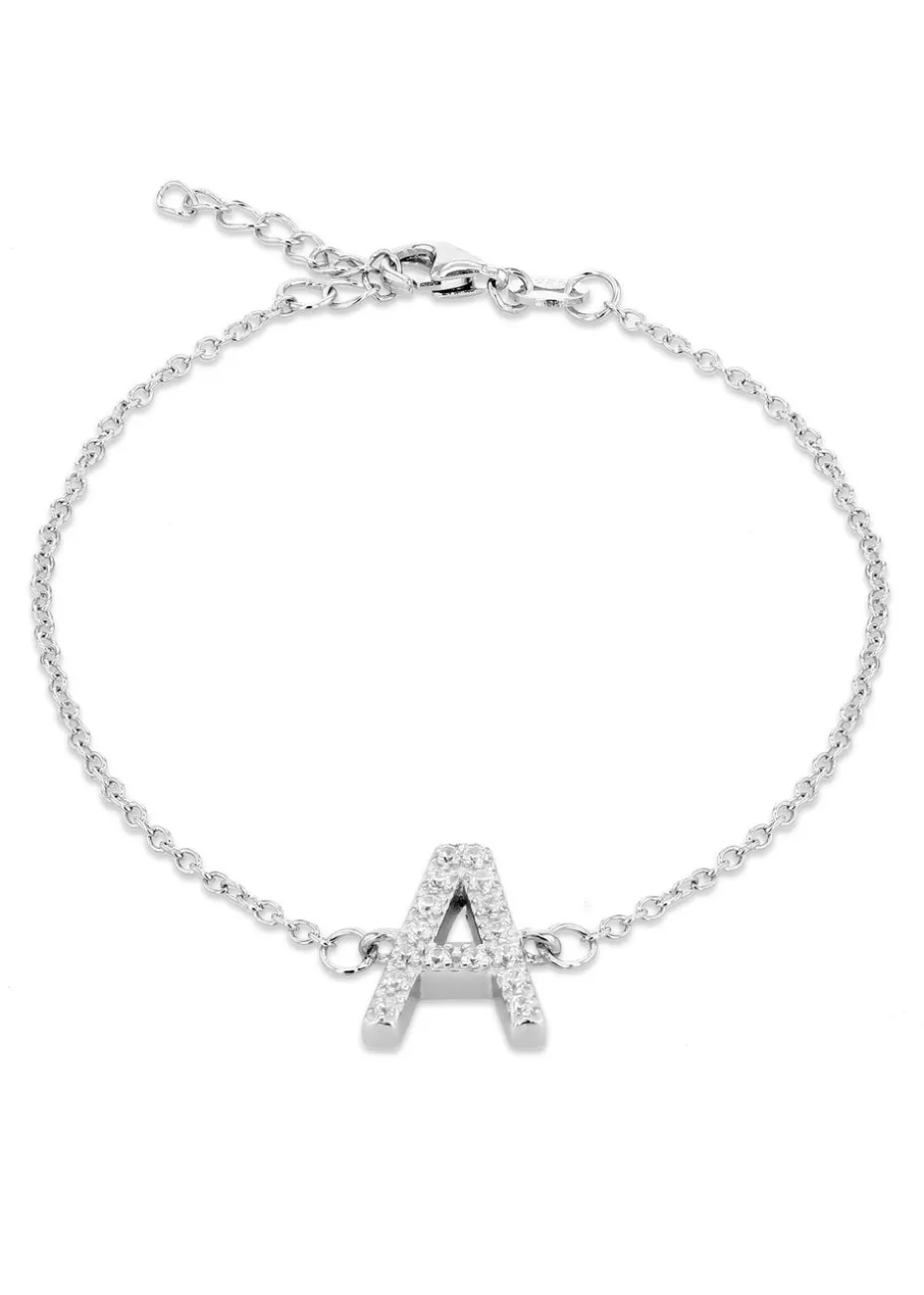 Crafted from sterling silver, this bracelet features a delicate chain adorned with sparkling cubic zirconia stones and a stunning initial charm.