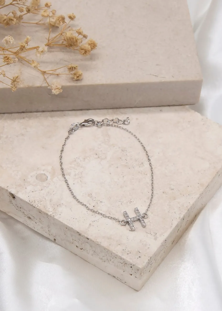 Introducing our Sterling Silver CZ Initial Bracelet, a personalized piece that combines elegance with individuality.