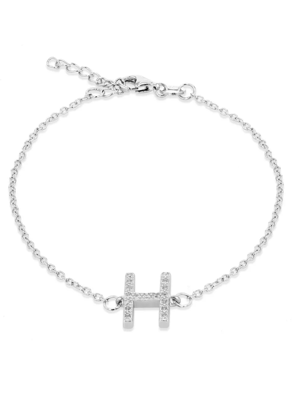 Crafted from sterling silver, this bracelet features a delicate chain adorned with sparkling cubic zirconia stones and a stunning initial charm.