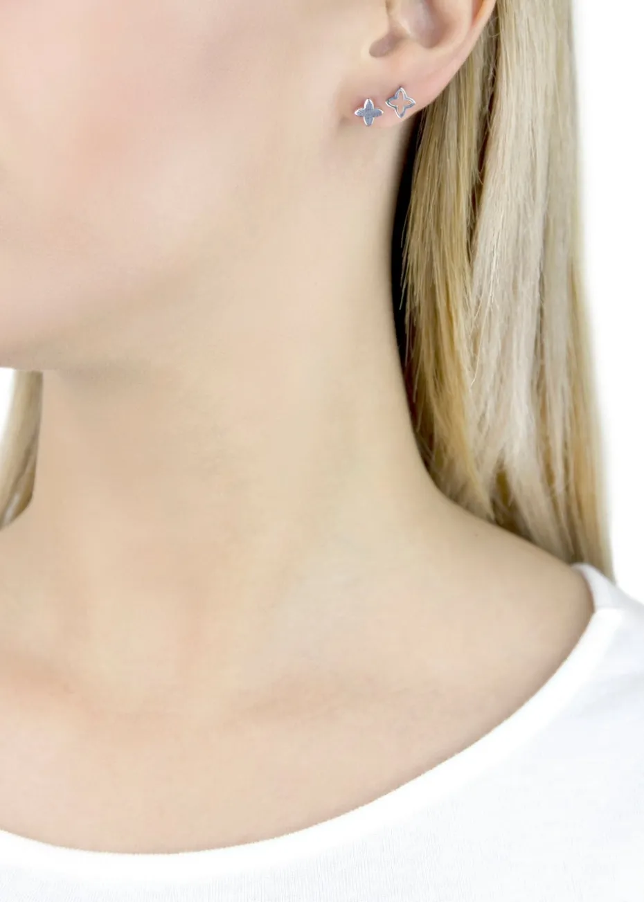 Crafted from sterling silver, these earrings feature two different designs: one solid flower and one cut-out flower, creating a playful yet elegant asymmetrical look.