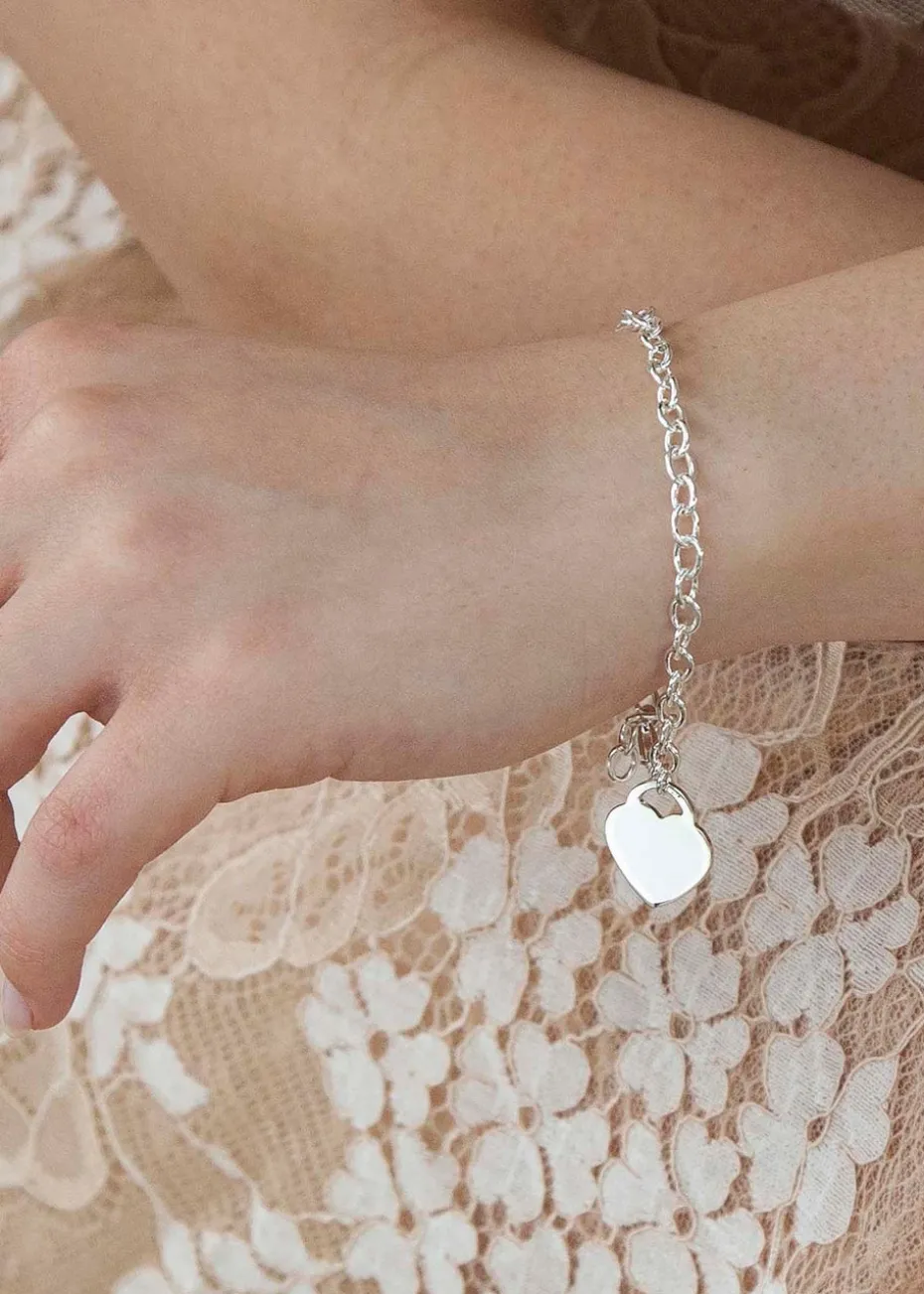 Designed to be both durable and stylish, the Heart-Charm Bracelet is a versatile accessory that symbolizes love and affection.
