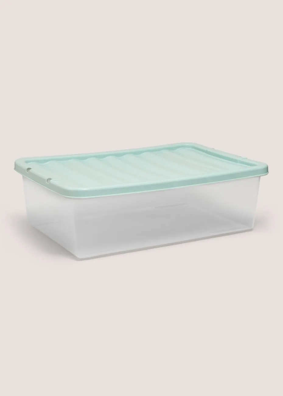 Keep your home or workspace tidy with this 32-litre storage box in a vibrant green color. Made from strong, durable plastic, this storage solution is perfect for organizing clothes, toys, craft supplies, tools, and more. The secure-fitting lid keeps contents protected from dust and moisture, while the stackable design maximizes space.