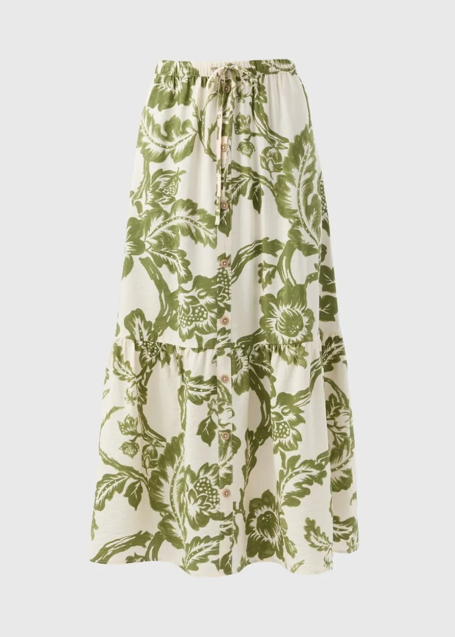 Add a touch of elegance to your wardrobe with this Green Floral Button Front Tiered Midaxi Skirt. Featuring a vibrant floral print, this skirt offers a flattering tiered design that flows beautifully with every step. The button-front detail adds a chic, vintage-inspired touch, while the midaxi length ensures a versatile, sophisticated look. Perfect for dressing up or down, this skirt brings effortless style to any occasion.
