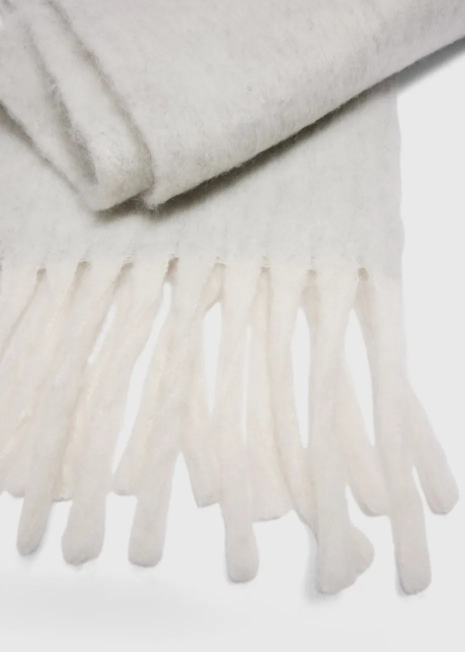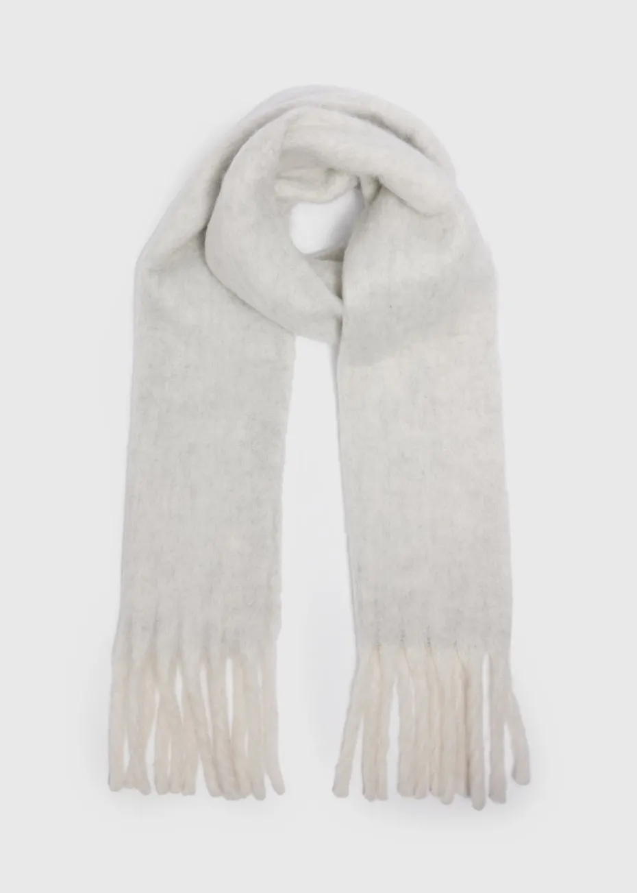 Stay warm and stylish with our Brushed Scarf in grey, the perfect accessory for chilly days. Crafted from a soft, brushed knit fabric, this scarf offers a plush feel that wraps you in comfort while adding a touch of sophistication to any outfit finished with tassels to each end.