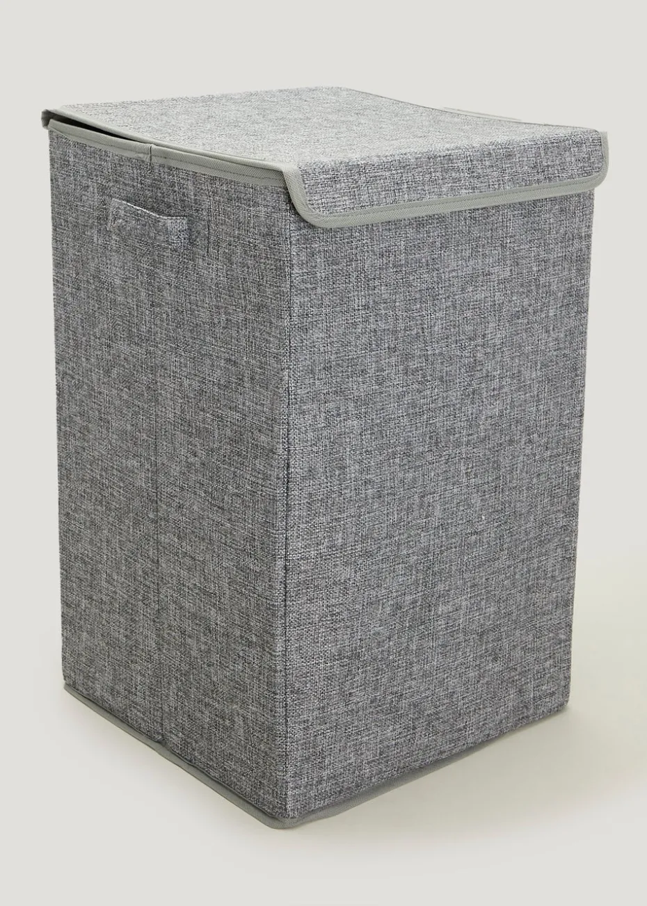 This collapsible laundry basket in grey is the perfect storage and space saving solution for your bathroom or bedroom. Complete with practical side handles, the lidded, lightweight design makes for easy carrying.