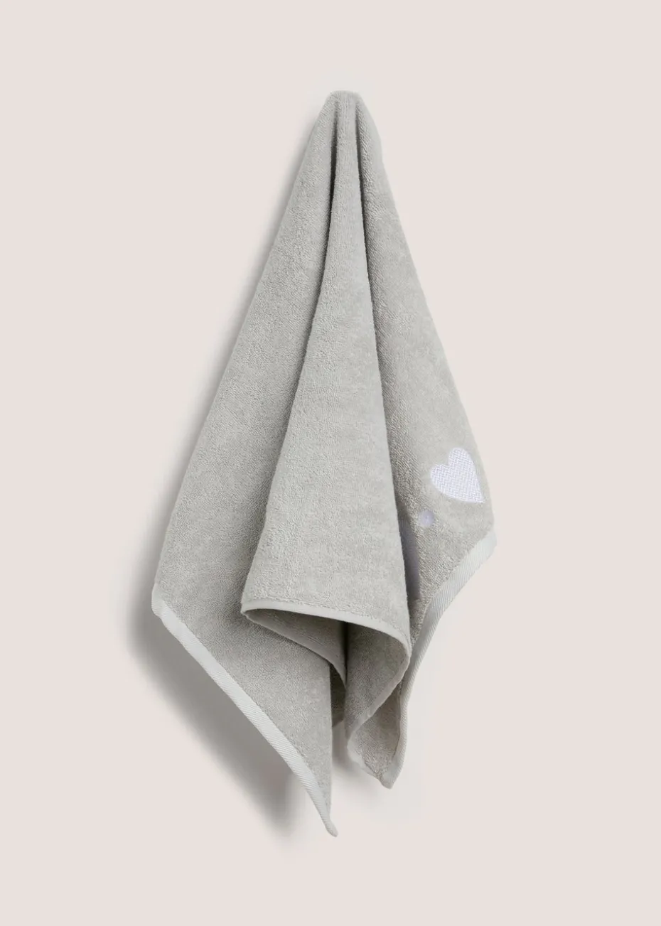 Add a touch of charm to your home with our Grey Embroidered Heart Hand Towel. Made from 100% cotton, this towel is soft to the touch and gentle on your skin. The elegant embroidered heart detail adds a delicate, heartfelt accent, making it perfect for bathrooms, kitchens, or guest spaces.