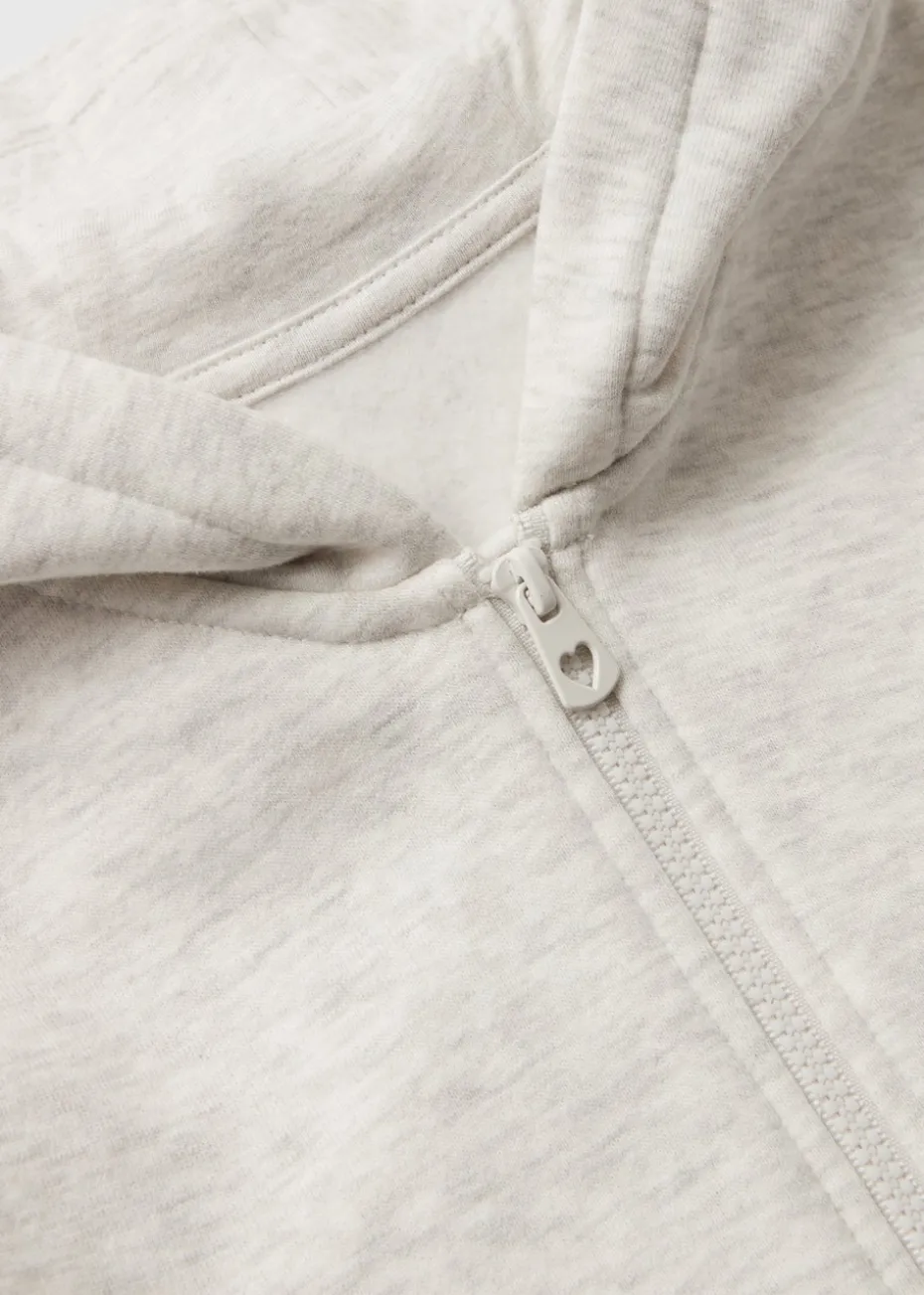 This grey hoodie features a convenient zip-through design for easy wear, ensuring your little one stays cosy in any season. What sets it apart is the adorable cut-out heart detail on the zipper, adding a playful and trendy touch to this wardrobe essential.