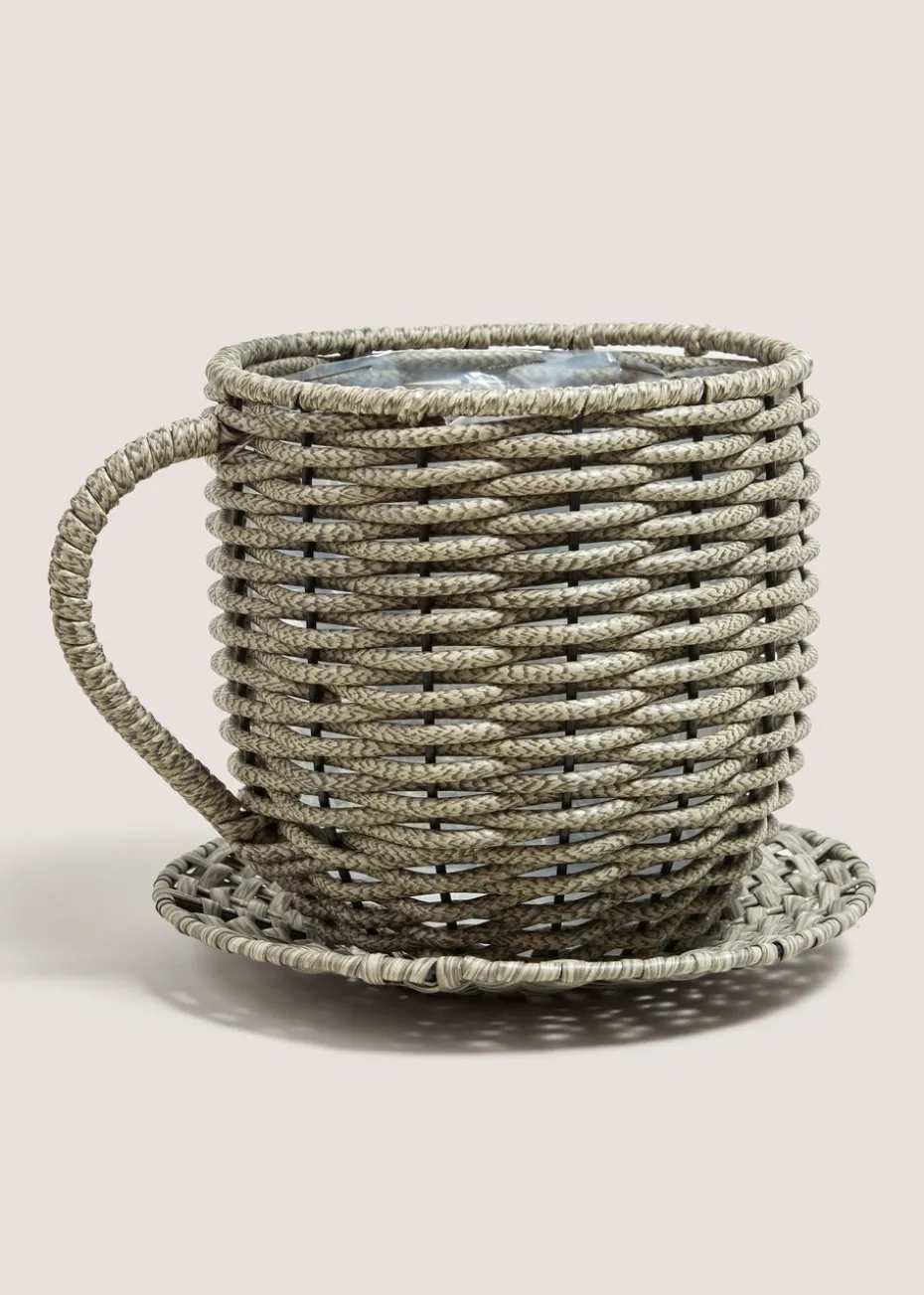 Grey Plastic Woven Planter