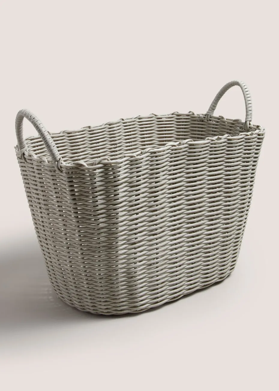 Introducing our Grey Storage Basket, meticulously crafted for both functionality and style. Measuring at 43cm x 40cm x 31cm, this spacious rectangular basket offers ample storage capacity while adding an elegant touch to your decor. The intricate weaving pattern showcases precision and craftsmanship, ensuring durability and robustness. The grey two-tone design exudes contemporary charm, seamlessly blending with various interior styles. Equipped with sturdy handles for easy transportation, this basket is not just a storage solution but also a statement piece that enhances the aesthetic appeal of your space.