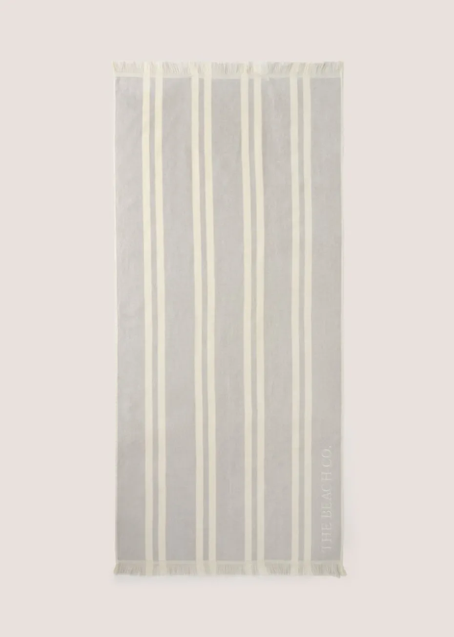 Upgrade your beach essentials with our Grey Stripe Beach Towel, featuring a timeless striped design in versatile shades of grey. Made from 100% cotton, this towel will keep you dry and comfortable after every swim. Perfect for beach days or poolside lounging and generously sized for full-body coverage, this stylish and practical towel is a must-have for any sun-soaked adventure.