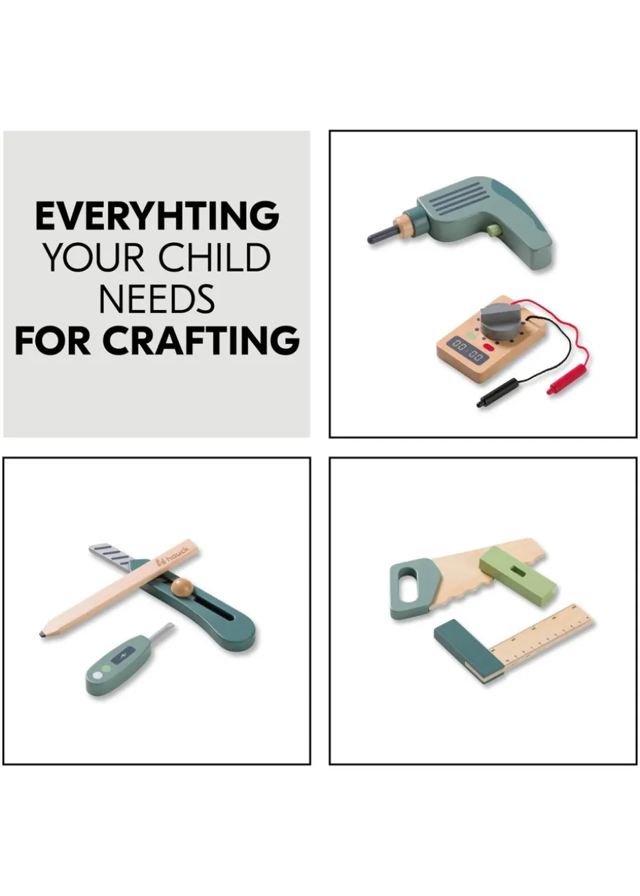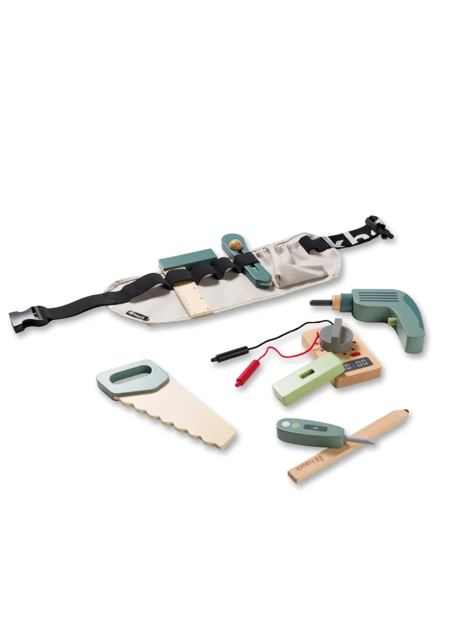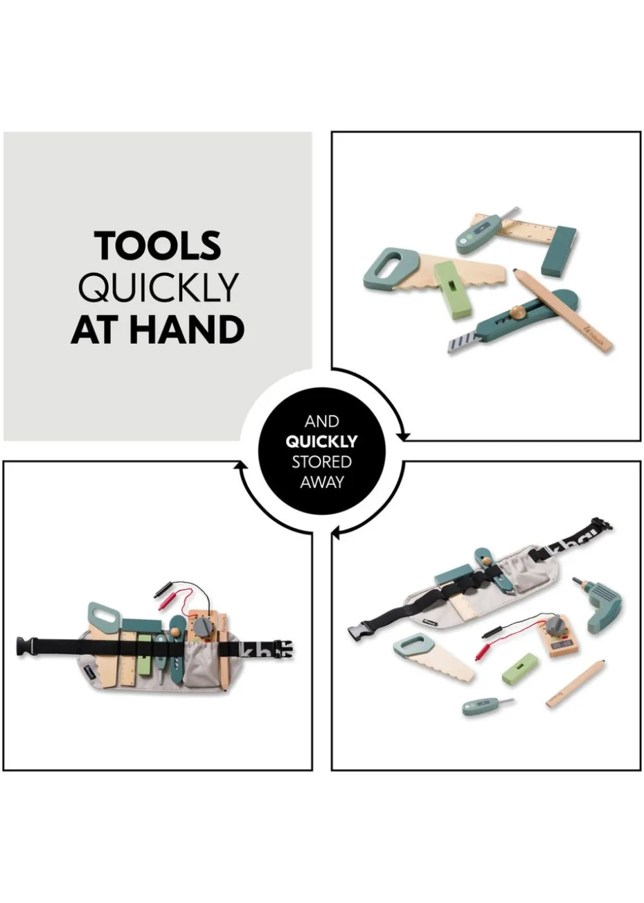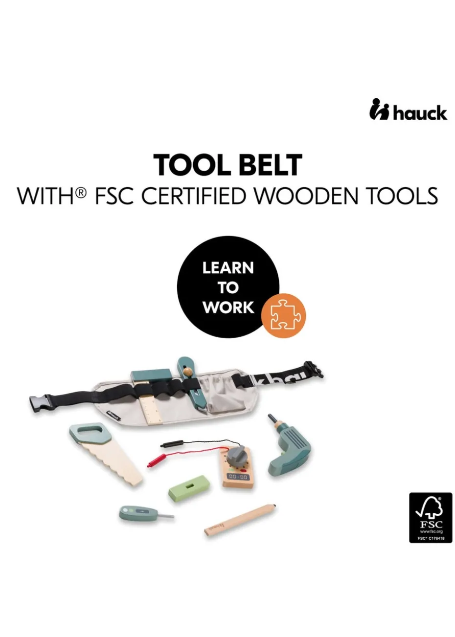 Learn to Work – Tool belt with FSCĀ®-certified wooden toolsCreative craftsman role-playThe kids tool set contains everything your child needs as a craftsman or craftswoman: Tool belt with drill, saw, multimeter, spirit level, pencil, carpenter’s square, phase tester and cutter knife. The realistic wooden toy tools encourage your child to get to know tools and to play imaginative role-playing games about handicrafts and repairs. The children’s tool belt is also a great toy to take on the go.Adjustable belt grows with your child from 3 years onwardYour child can adjust the tool belt individually and open and close it on their own thanks to the easy-to-use click buckle. Also, your child is handsfree at all times, while having all tools quickly at hand. Once the work is done, your child can easily store the tools in the loops of the children’s tool belt.Protect the environment: FSCĀ®-certified woodThe tool set is made of durable wood that derives from FSCĀ®-certified forests. This guarantees sustainable and ecological forest use that protects plants and animals.