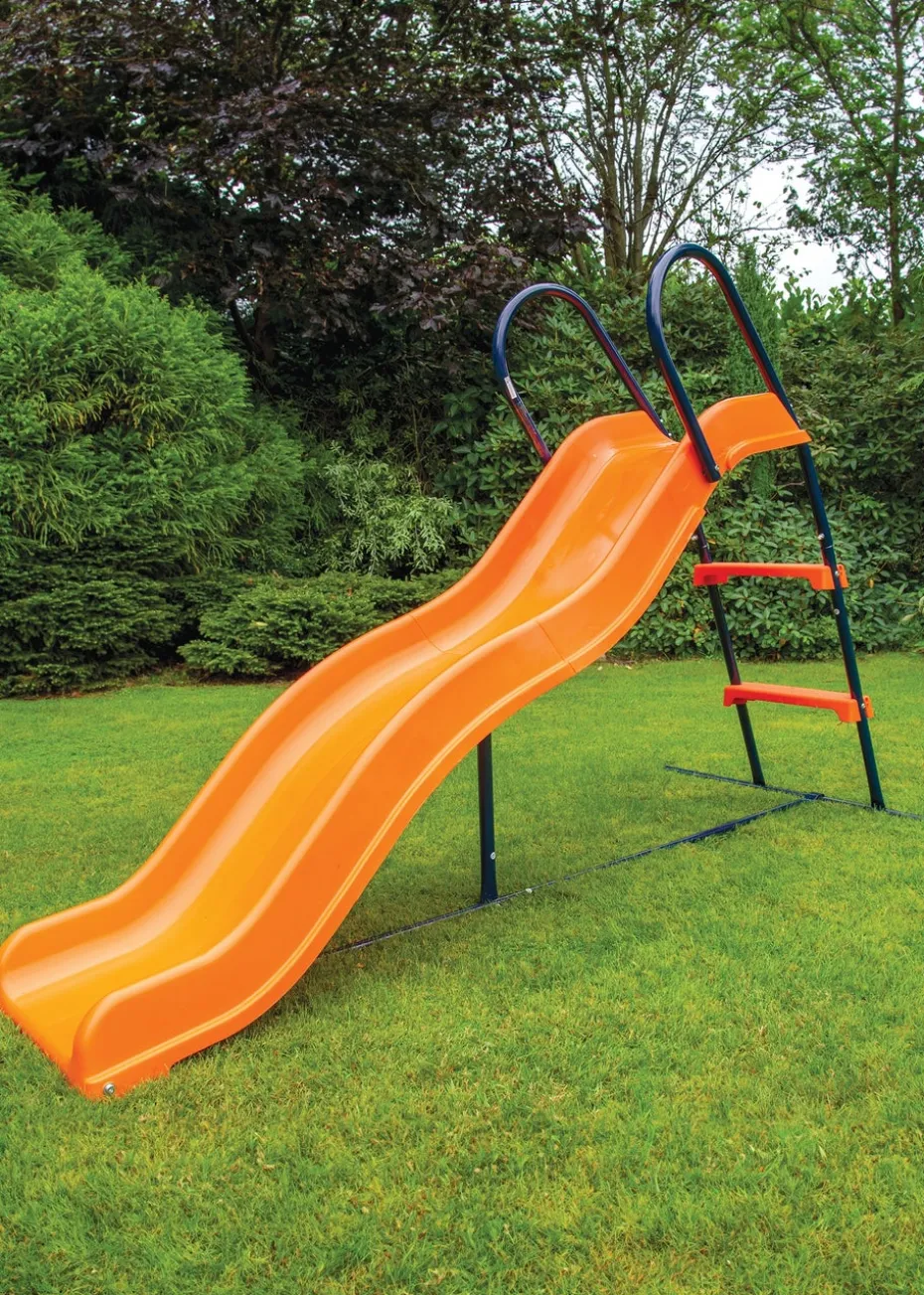 Nothing beats the great outdoors so get kids off the sofa and into the garden for active play with the Hedstrom Wavy Slide! The wavy slide chute measures 5.7ft in length and is again blow-moulded with steel support underneath for a strong and stable construction and smooth slide action. The high hand rails, broad stabiliser bars and grip tread to the top of the slide offer extra stability for getting seated. The main frame is constructed from heavy duty powder coated steel for stability and durability and the entire set features UV resistance for longevity. For safety, place the wavy slide on a level surface at least two metres from any structure or obstruction – we also strongly recommend adult supervision at all times.
