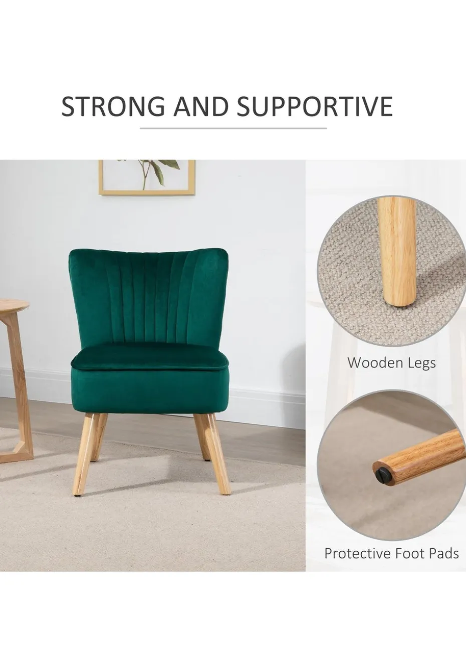 HOMCOM Green Velvet Accent Chair Occasional Tub (57cm x 68cm x 76cm)