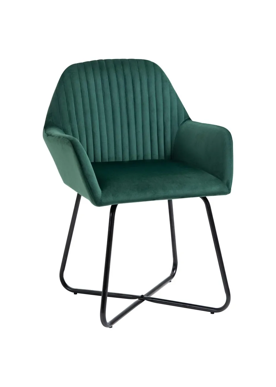 attached to the criss-cross bass. It’s a striking look which serves well as an accent piece. Velvet-feel upholstery injects luxury, whilst the padding makes it comfortable. The metal base ensures this bedroom chair keeps steady and supports you properly. Colour: Green Material: Velvet (100% Polyester), Sponge, Metal Overall Dimensions: 60W x 56.5D x 85Hcm Seat Size: 41W x 41D x 49Hcm Back Size: 55W x 39Lcm Overall Weight Capacity: 120kg Item Label: 839-128V71GN