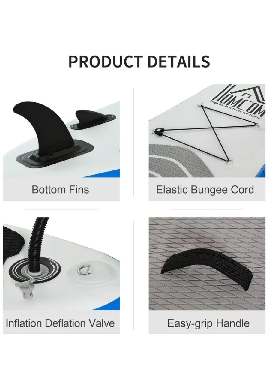 ACCESSORIES INCLUDED: Adjustable aluminium paddle, shell repair kit, pump, backpack and safety leash. Colour: Blue, White, Grey and Black