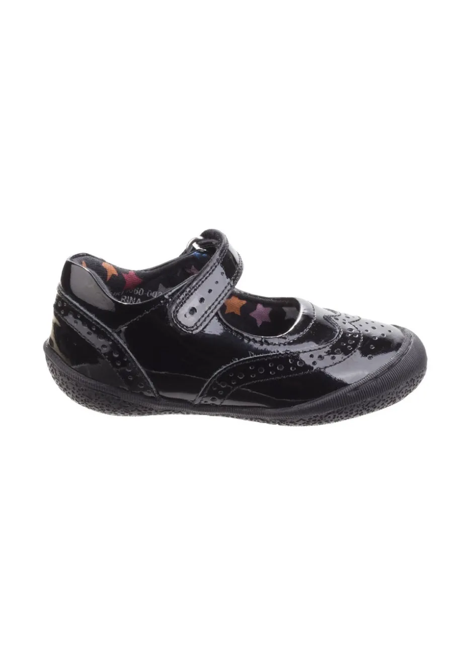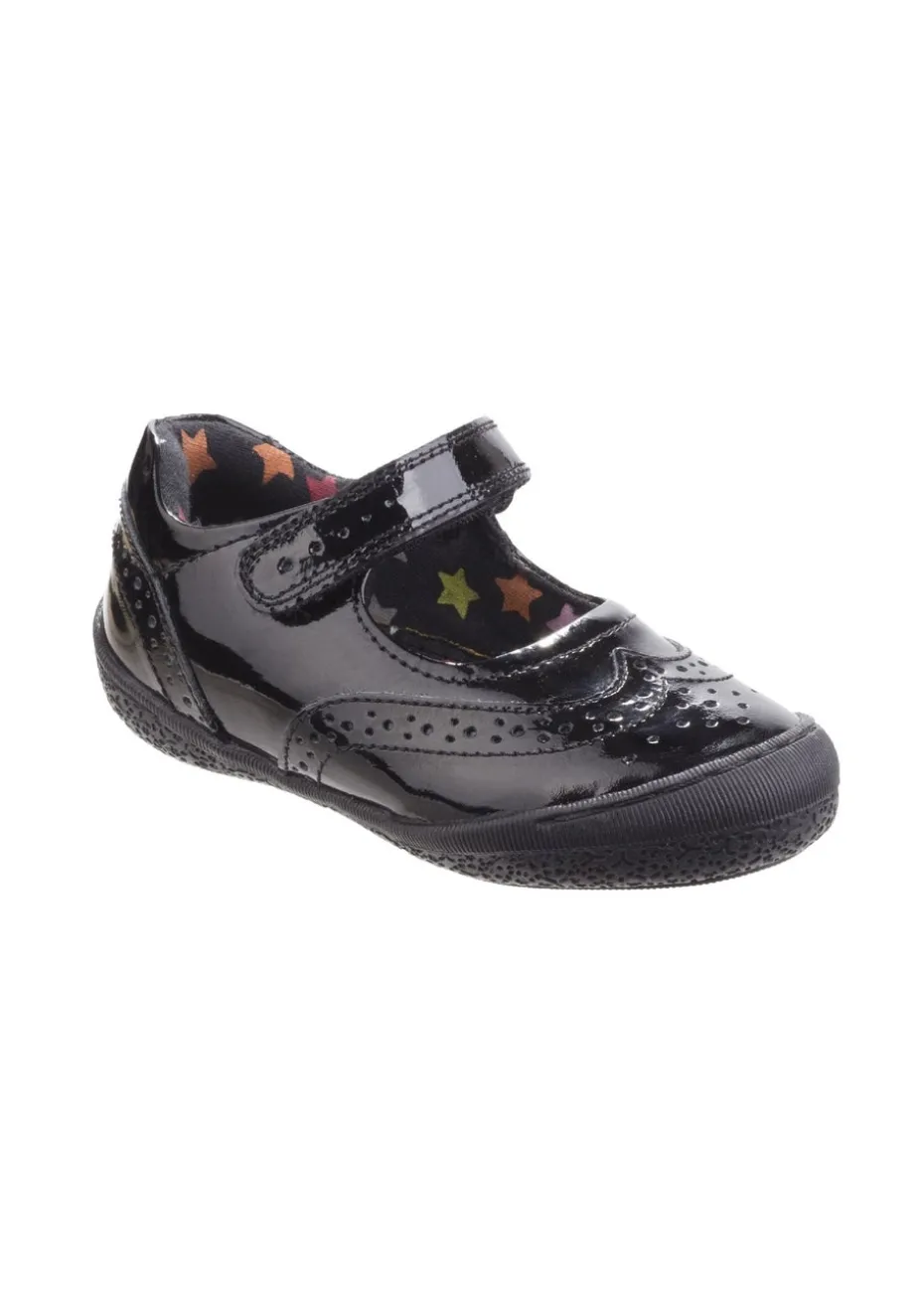 Girls patent leather Mary-Jane with brogue detail on the toe. Interchangeable insoles allow a perfect custom fit for each foot. Custom Fit – Unique fitting system allows for 5 different width fittings for each individual foot. Every pair of shoes comes with 3 pairs of footbeds Half sizes included Patent Leather Approx 12mm Heel Height
