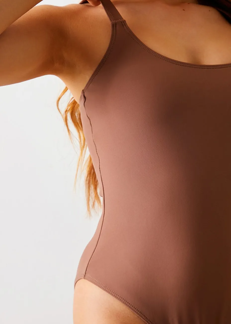 The cutest swimsuit featuring a scoop neck in a beautiful chocolate buttery fabric. This chocolate-hued one-piece swimsuit is a delightful blend of comfort and style. You need this in your suitcase!