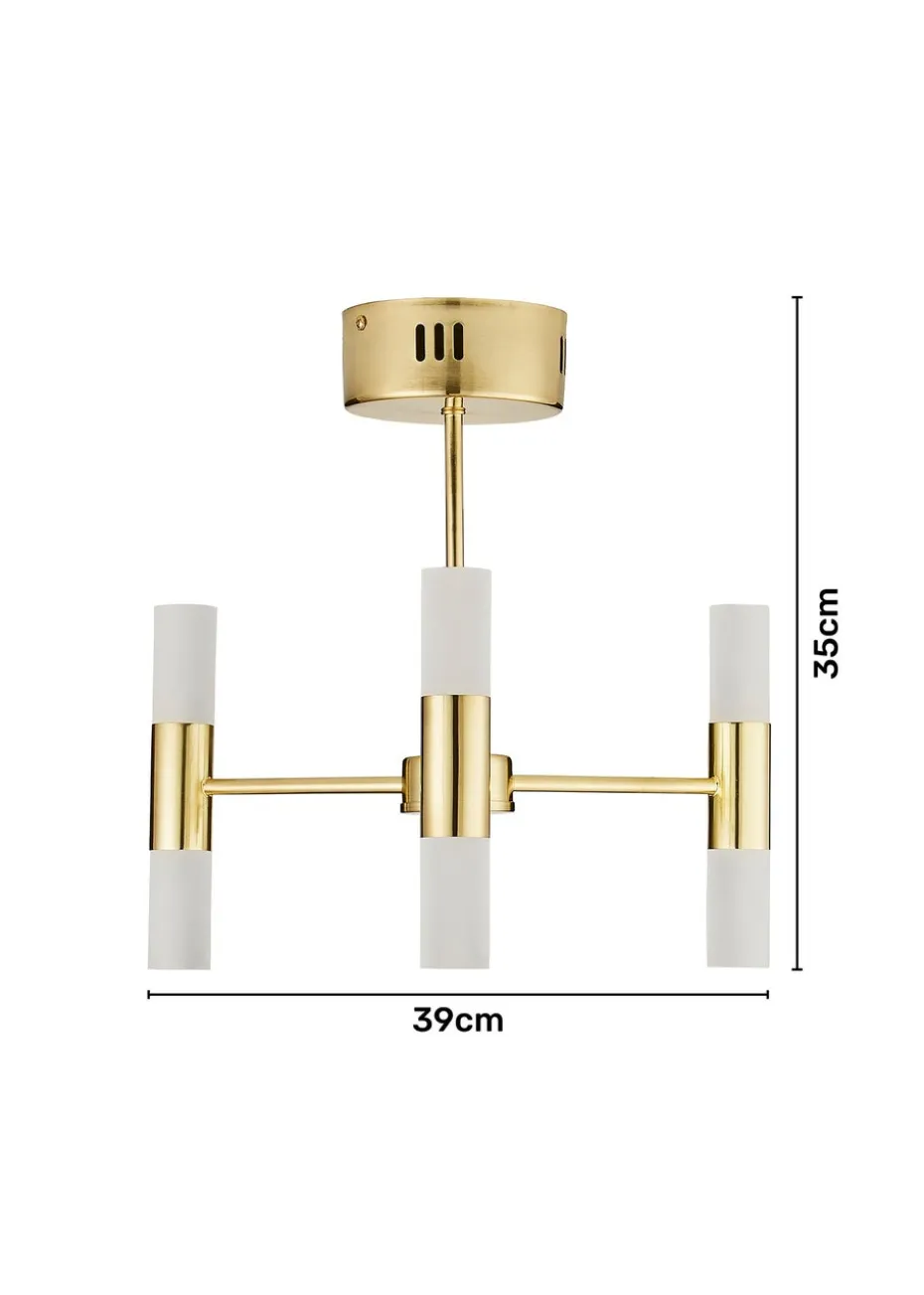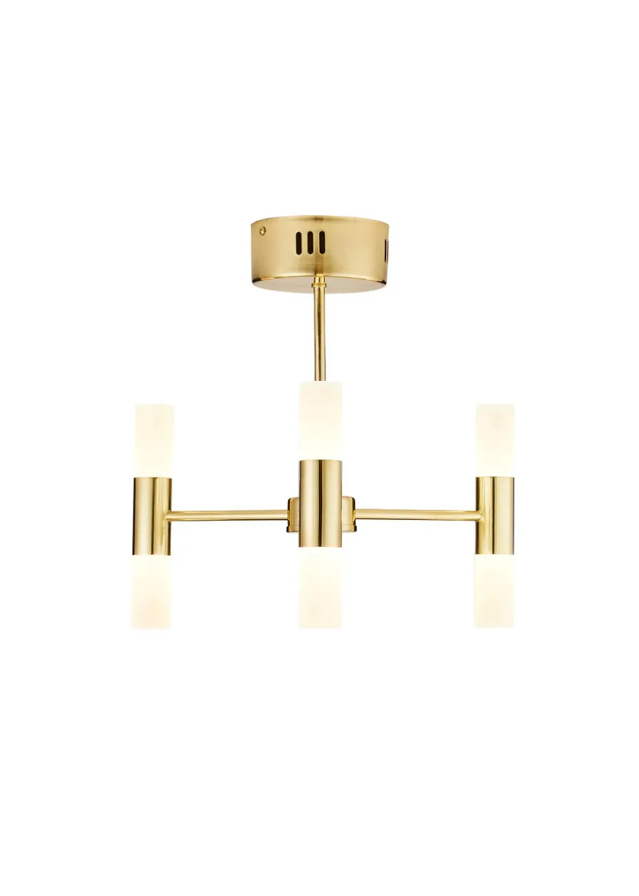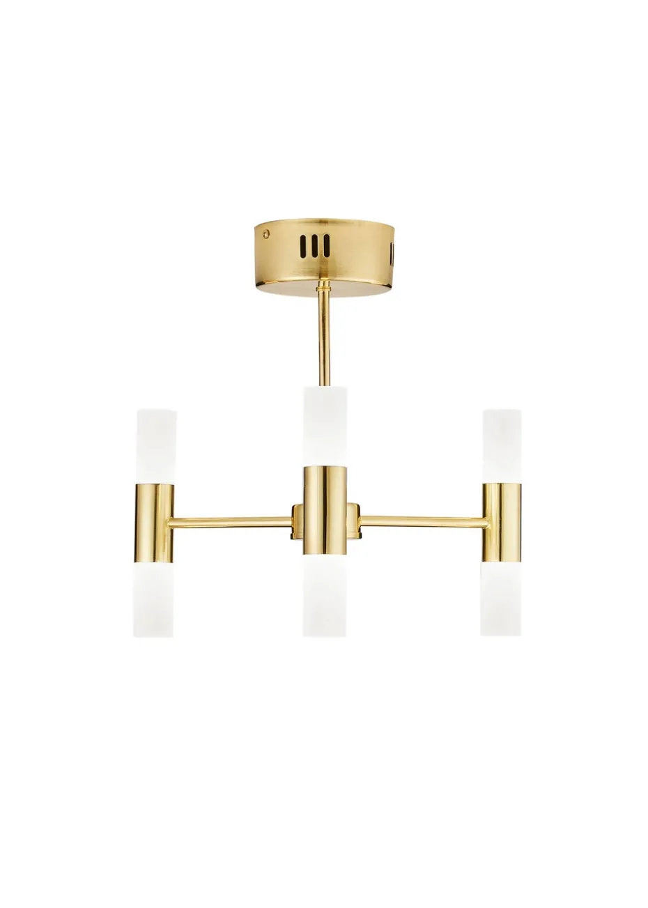 The INLIGHT 3 Arm Tube LED 6 Light Brass is a sophisticated lighting fixture designed to elevate the aesthetic appeal of any interior space. With its contemporary design and luxurious brass finish, this fixture serves as both a functional light source and a statement piece. Height 35cm x Width 39cm. Integrated LED.