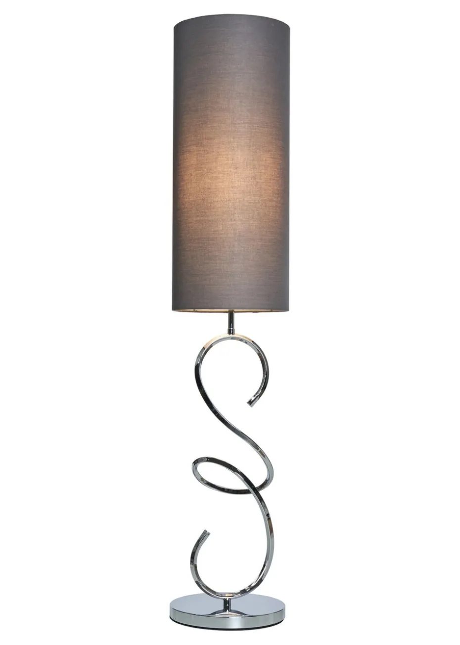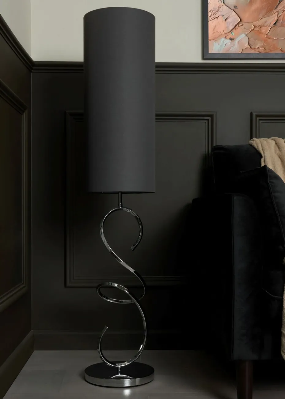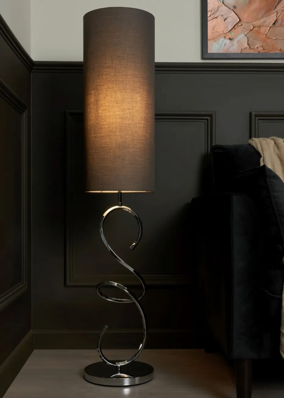 The INLIGHT Sculpted Spiral Floor Lamp in Chrome with Tall Fabric Shade blends innovative design with modern elegance. Its sculptural chrome base forms a captivating spiral, making it a striking centerpiece in any room. The tall fabric shade adds a touch of sophistication, diffusing light softly to create a warm and inviting ambiance. Bulb type: 1 x E27 (not included). Height 120cm x Width 25cm.
