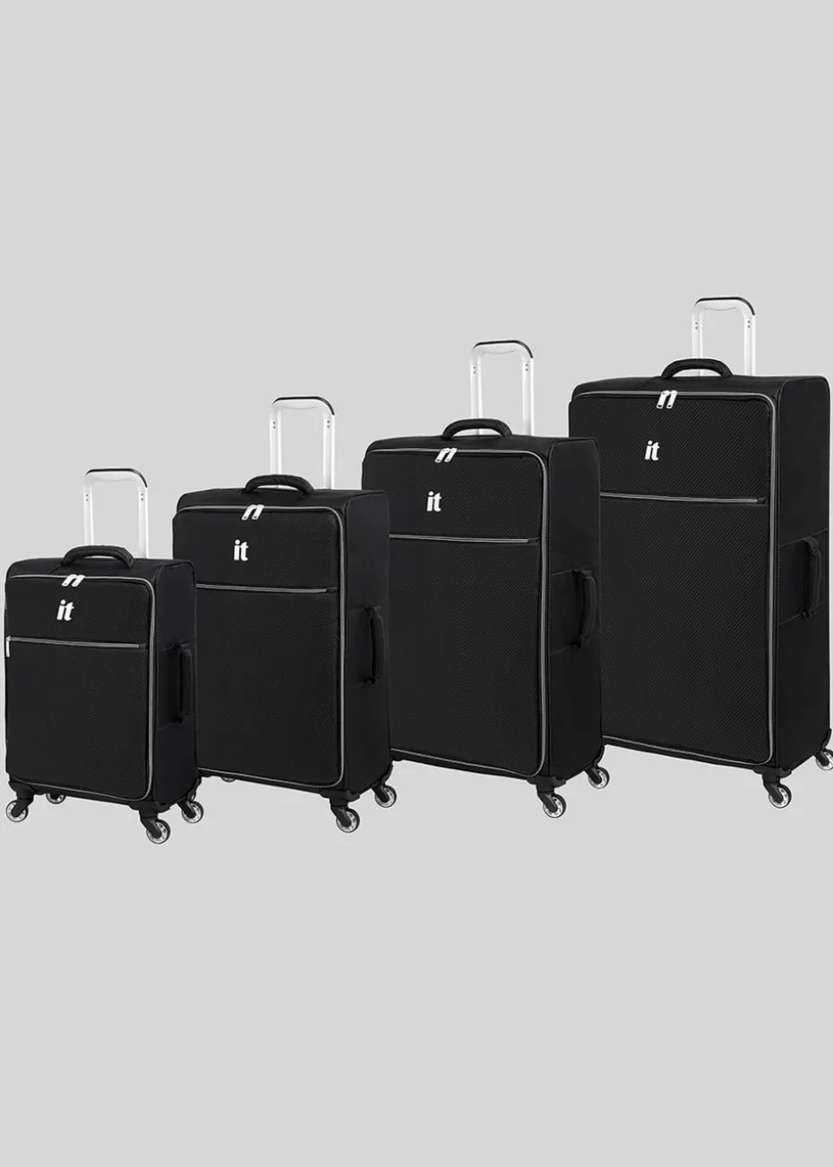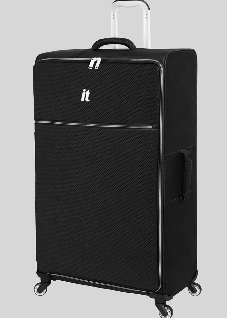 This black soft suitcase from IT Luggage combines style and functionality, offering a versatile and reliable solution for your travel needs. Designed with durability in mind, the soft material provides flexibility while maintaining a sturdy structure to protect your belongings.