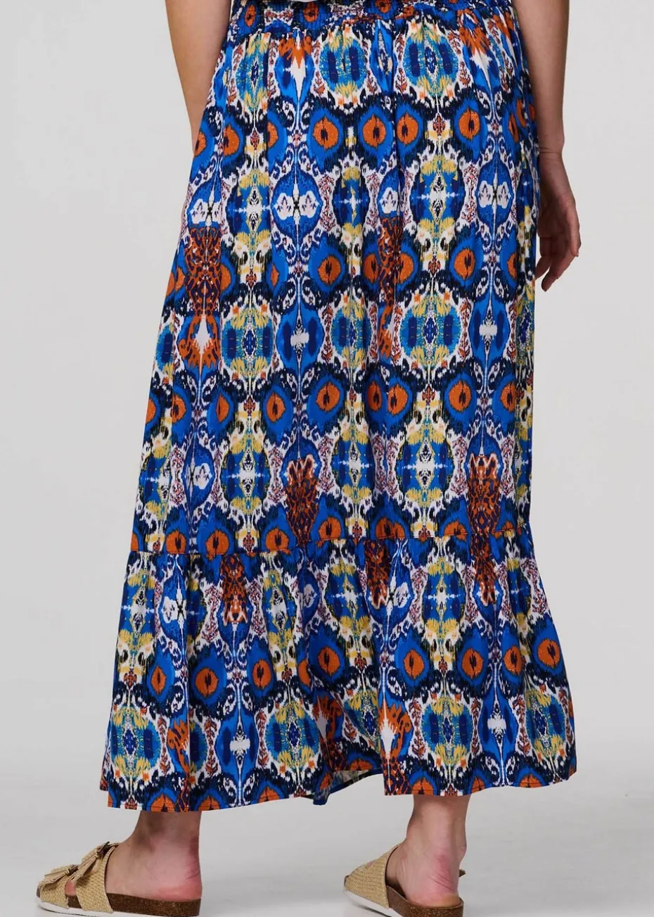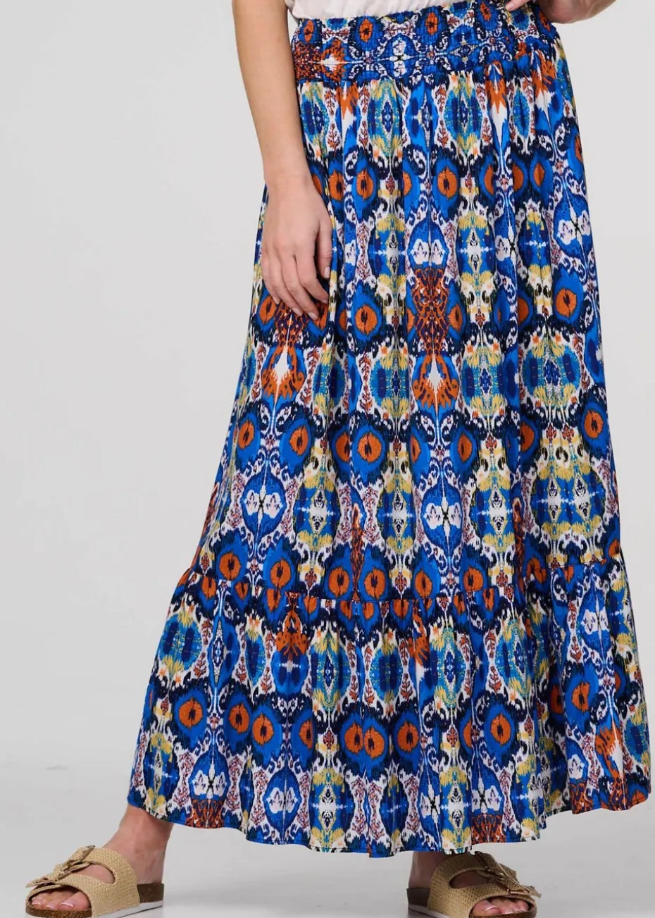 Izabel London Blue Printed Shirred High Waist Maxi Skirt