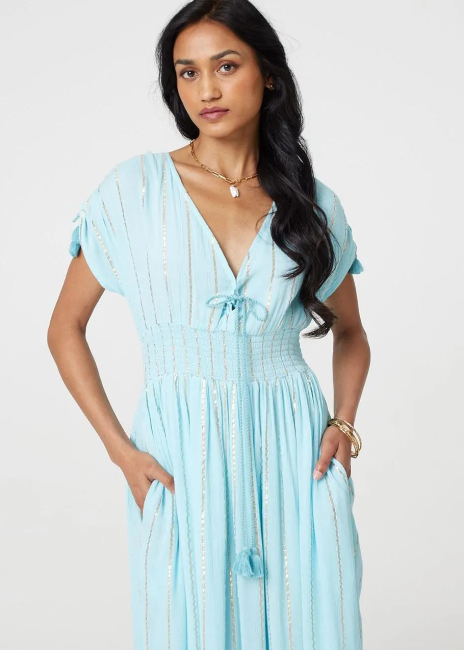 Izabel London Blue Striped Cap Sleeve Empire Maxi Dress