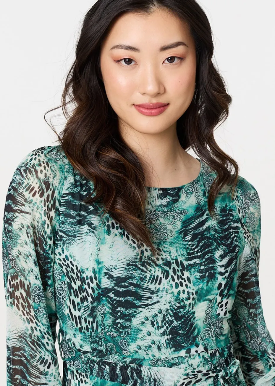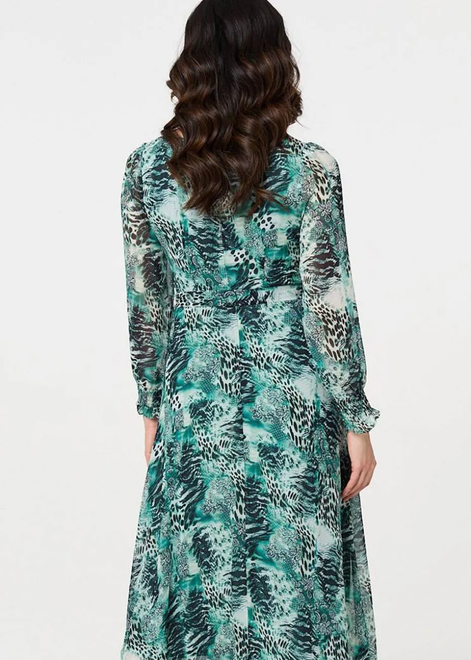 Izabel London Green Animal Print Semi Sheer Maxi Dress