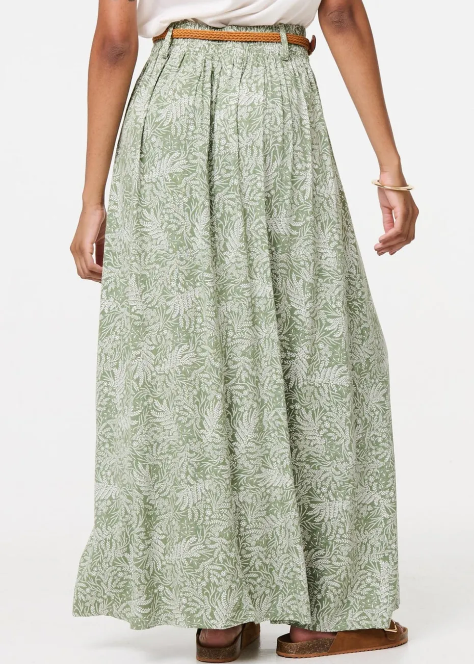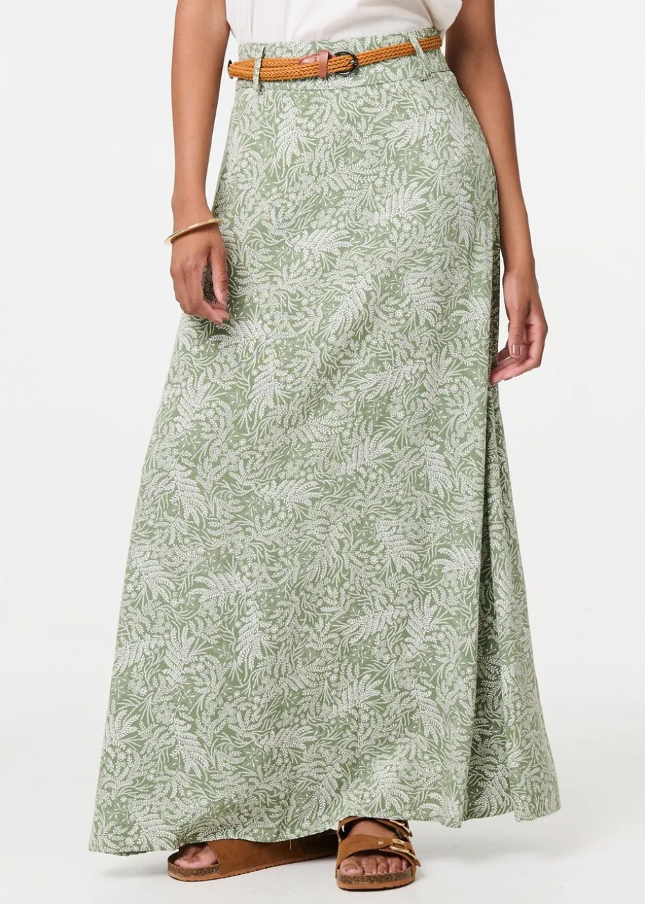 Izabel London Green Leaf Print Belt Detail Maxi Skirt