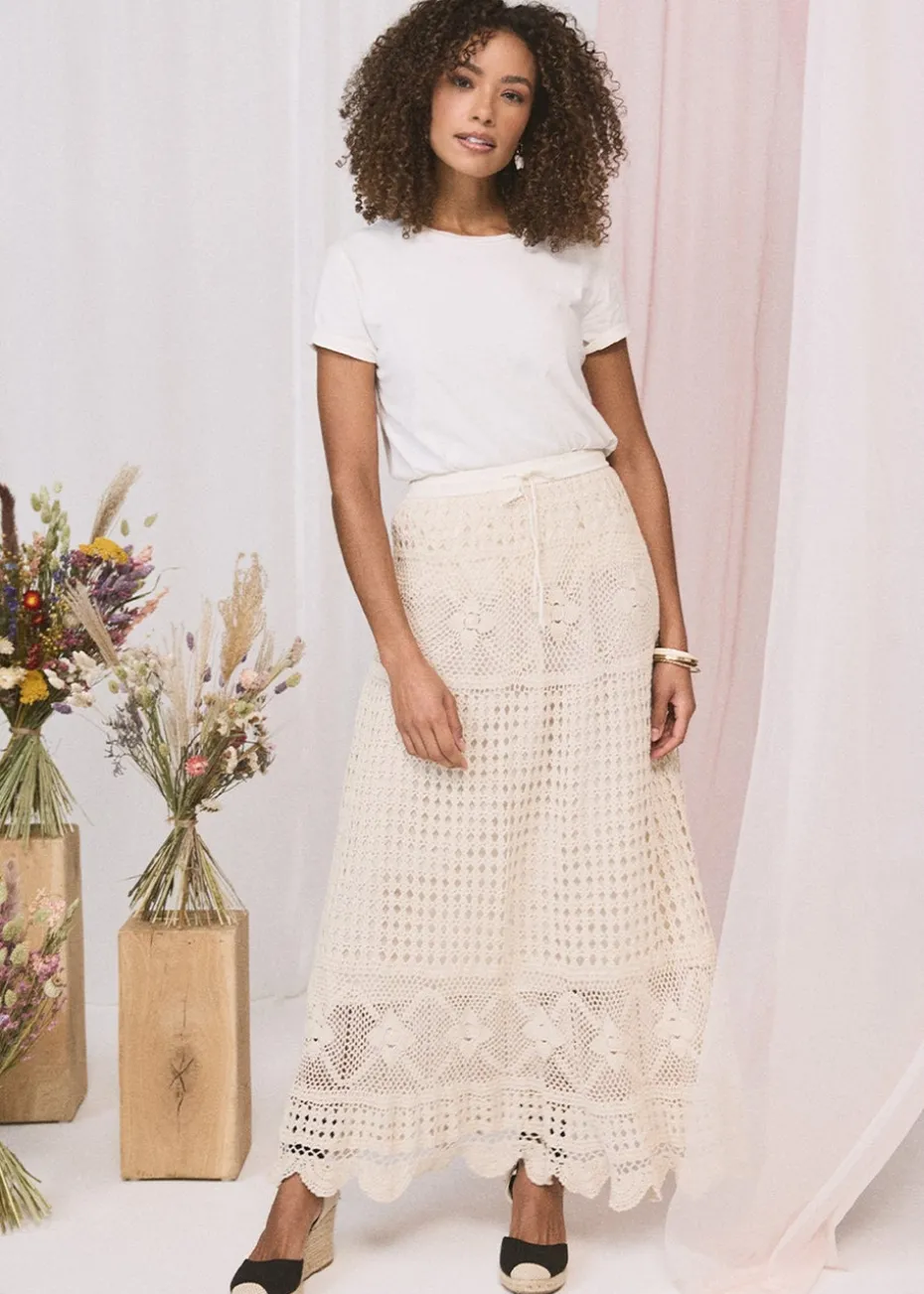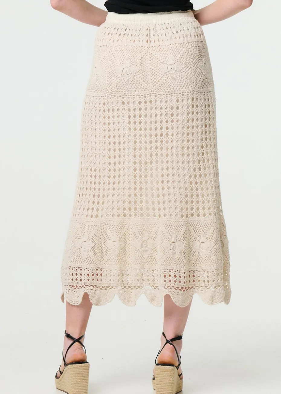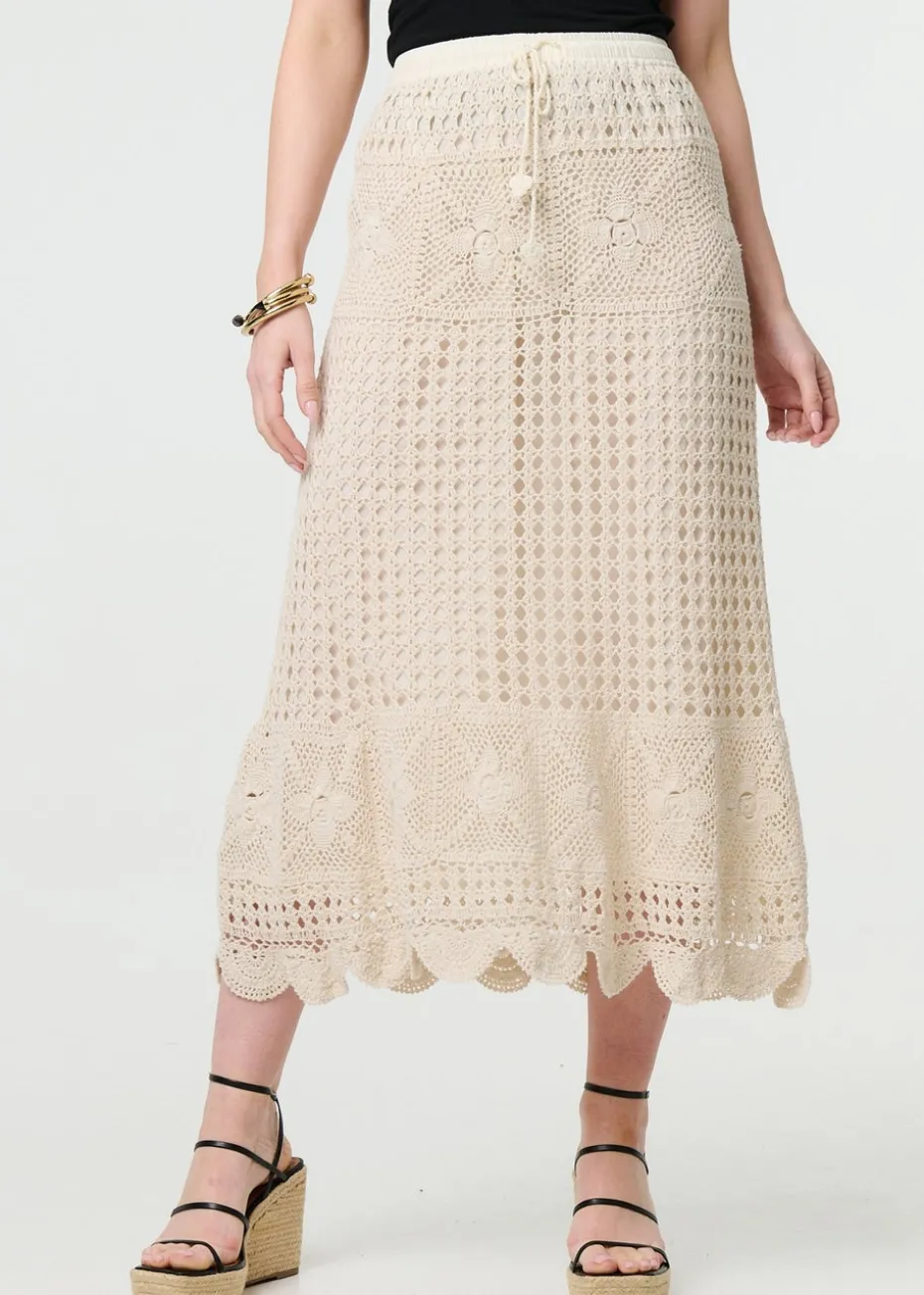 Izabel London Ivory Mesh Crochet Texture Tie Waist Midi Skirt
